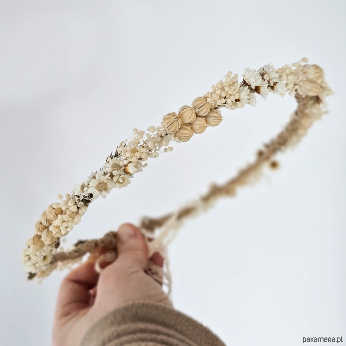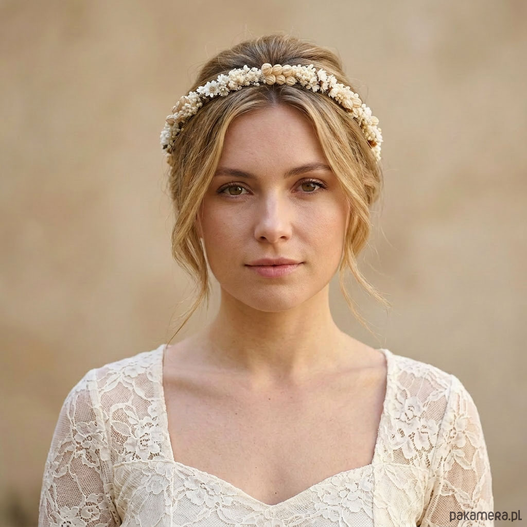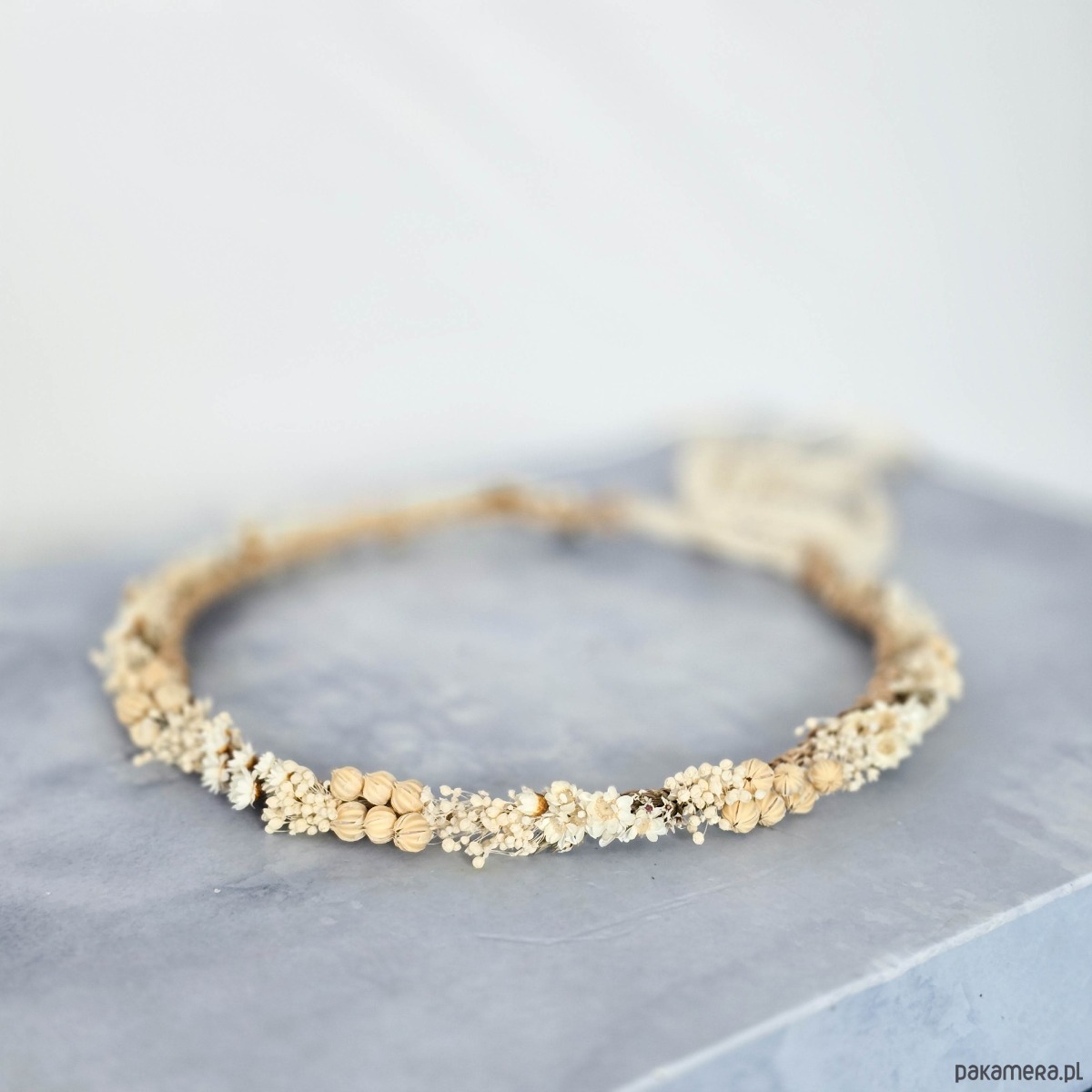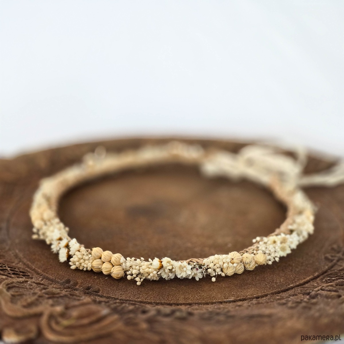 Delikatny naturalny wianek ślubny - suszone kwiaty