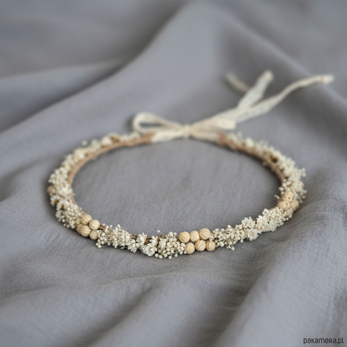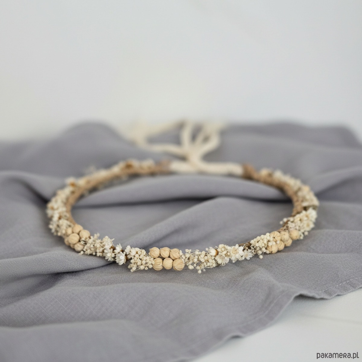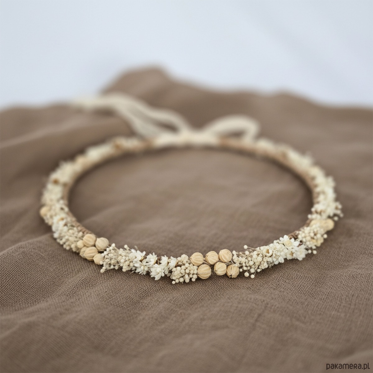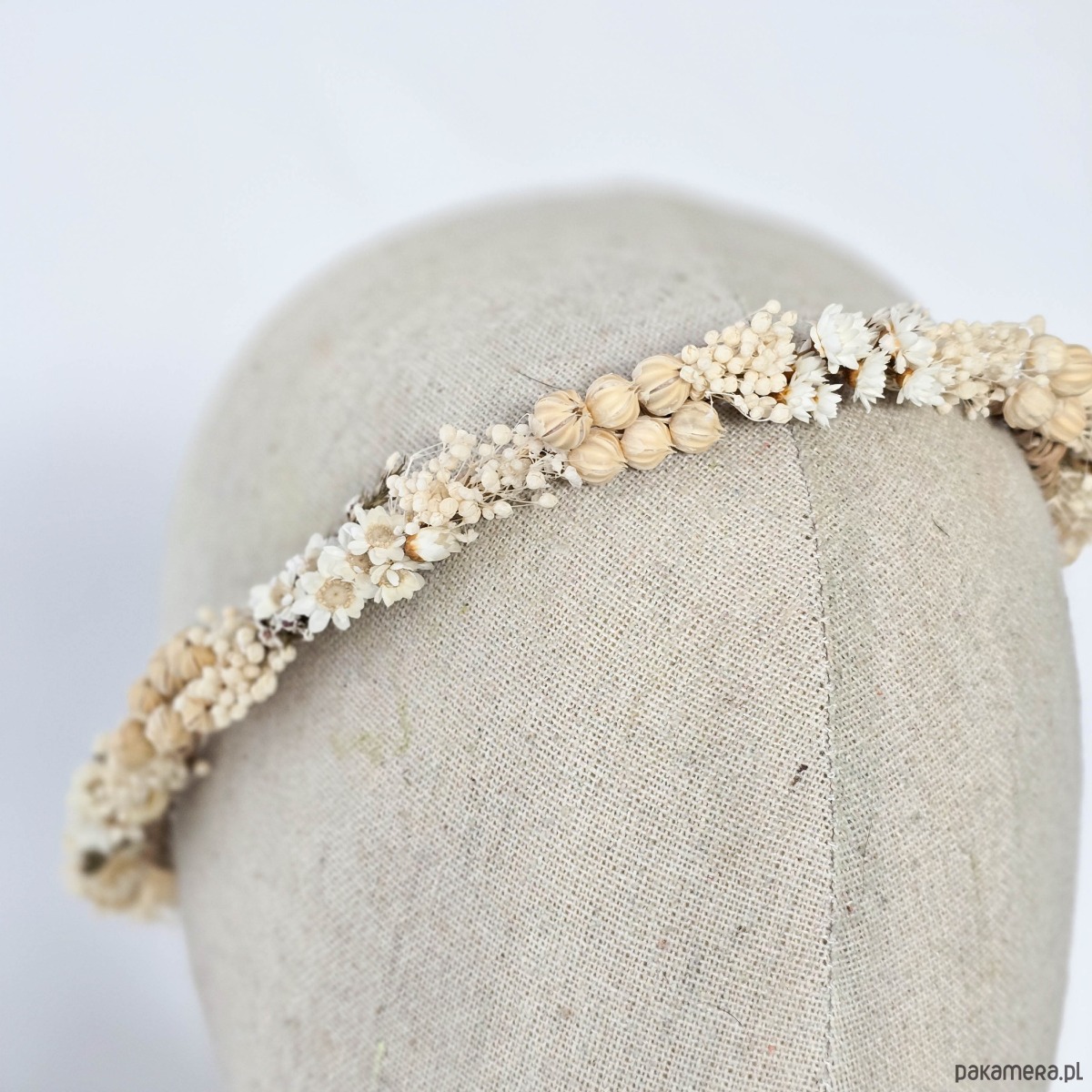 Delikatny naturalny wianek ślubny - suszone kwiaty