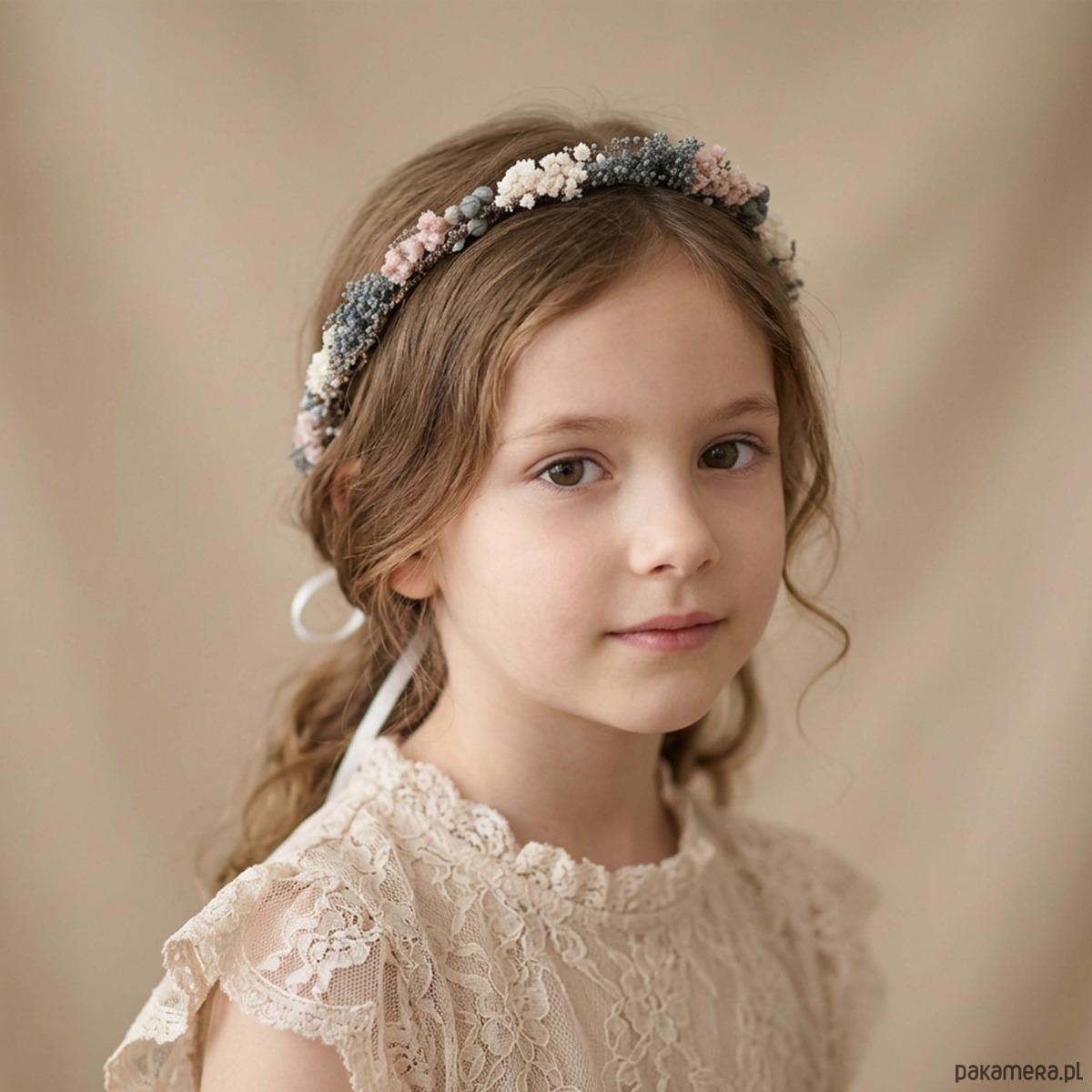 Delikatny, kwiatowy wianek na głowę. Ten subtelny wianuszek to idealny wybór dla wielbicielek minimalizmu. Wianek wykonany z naturalnych, suszonych kwiatów w odcieniach ivory, brudnego różu i fioletu. Część kwiatowa wianka ma 50 cm, więc pasuje na każdą głowę o obwodzie powyżej 50 cm. Będzie pasował zarówno na głowę dziecka, jak i osoby dorosłej. Możliwość regulacji wielkości obwodu dzięki satynowej tasiemce z tyłu.