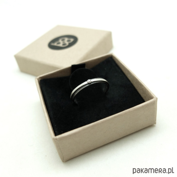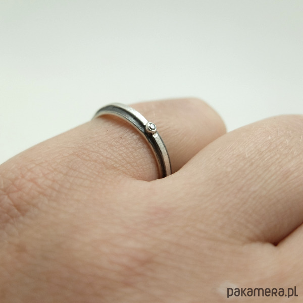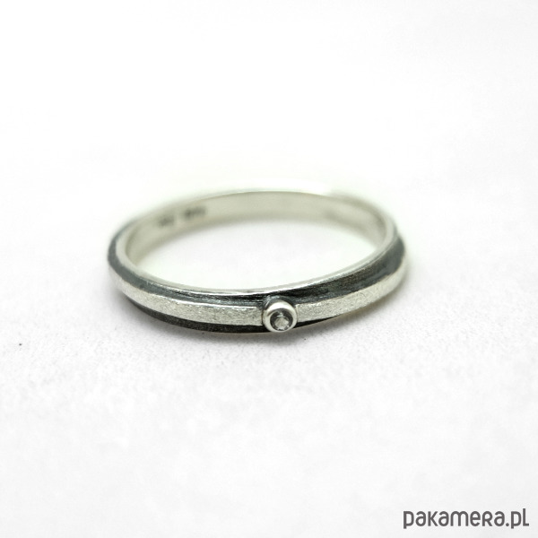 Pierścionek srebrny z bezbarwnym topazem o średnicy 1,5 mm. Należy on do kolekcji Wstęgi i wyróżnia się prostotą formy. Szeroki na 2,5 mm. Jego powierzchnia jest delikatnie satynowana i częściowo oksydowana. Wykonany ze srebra próby 0,925. Proszę podaj swój rozmiar jubilerski lub średnicę wewnętrzną pierścionka po złożeniu zamówienia . Wysyłam zapakowany w ozdobne, ekologiczne pudełko.