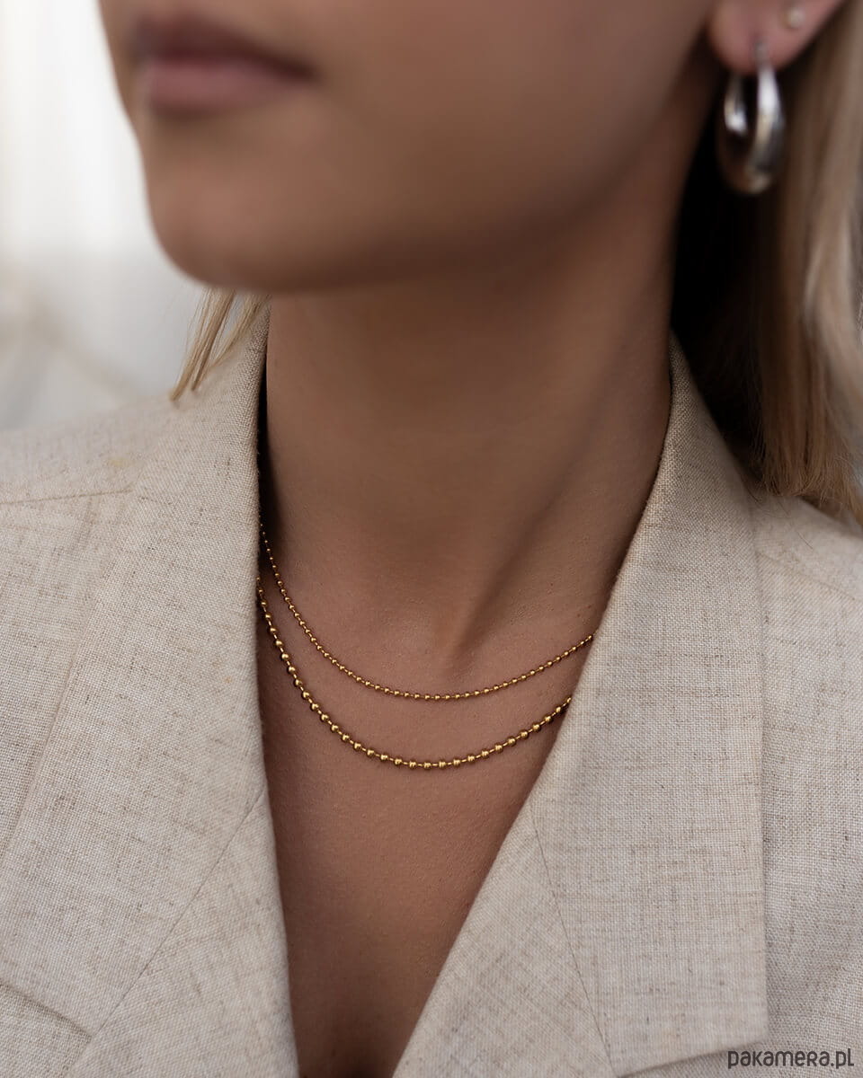 Szukasz subtelnej ozdoby, która będzie pasować do każdego stylu – zarówno na co dzień, jak i na specjalne okazje? Naszyjnik Paraiso Eirene to doskonały wybór dla kobiet ceniących minimalizm i klasę w jednym.Ten lekki, delikatny łańcuszek o kuleczkowym splocie pięknie układa się na dekolcie, tworząc świetlistą oprawę dla Twojej szyi. Dlaczego nasz naszyjnik jest lepszy niż klasyczne srebro? Bo wykonany jest ze stali chirurgicznej premium - nie uczula, nie rdzewieje i nie ciemnieje, nawet jeśli nosisz go codziennie. Możesz bez obaw zabrać go na siłownię, nad morze czy pod prysznic - zawsze będzie wyglądał jak nowy.Co wyróżnia Paraiso Eirene?– lekka forma (9,4 g), która nie obciąża szyi– kuleczki o średnicy 0,2 cm i 0,3 cm - subtelny, ale widoczny detal– modna, minimalistyczna forma - idealna do warstwowego noszenia– trwałość na lata - stal chirurgiczna zachowuje kolor i połysk– ponadczasowy design pasujący do każdej okazjiWymiary:41,5 + 5,5 cm; 45,5 + 5,5 cm.To idealny prezent dla mamy, siostry, przyjaciółki lub… dla samej siebie. Jeśli chcesz sprawić sobie przyjemność i mieć pewność, że inwestujesz w trwałą, stylową biżuterię - Paraiso Eirene będzie strzałem w dziesiątkę.