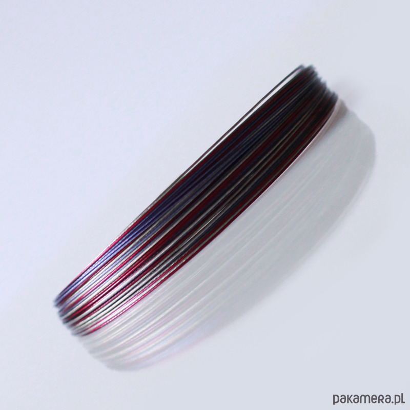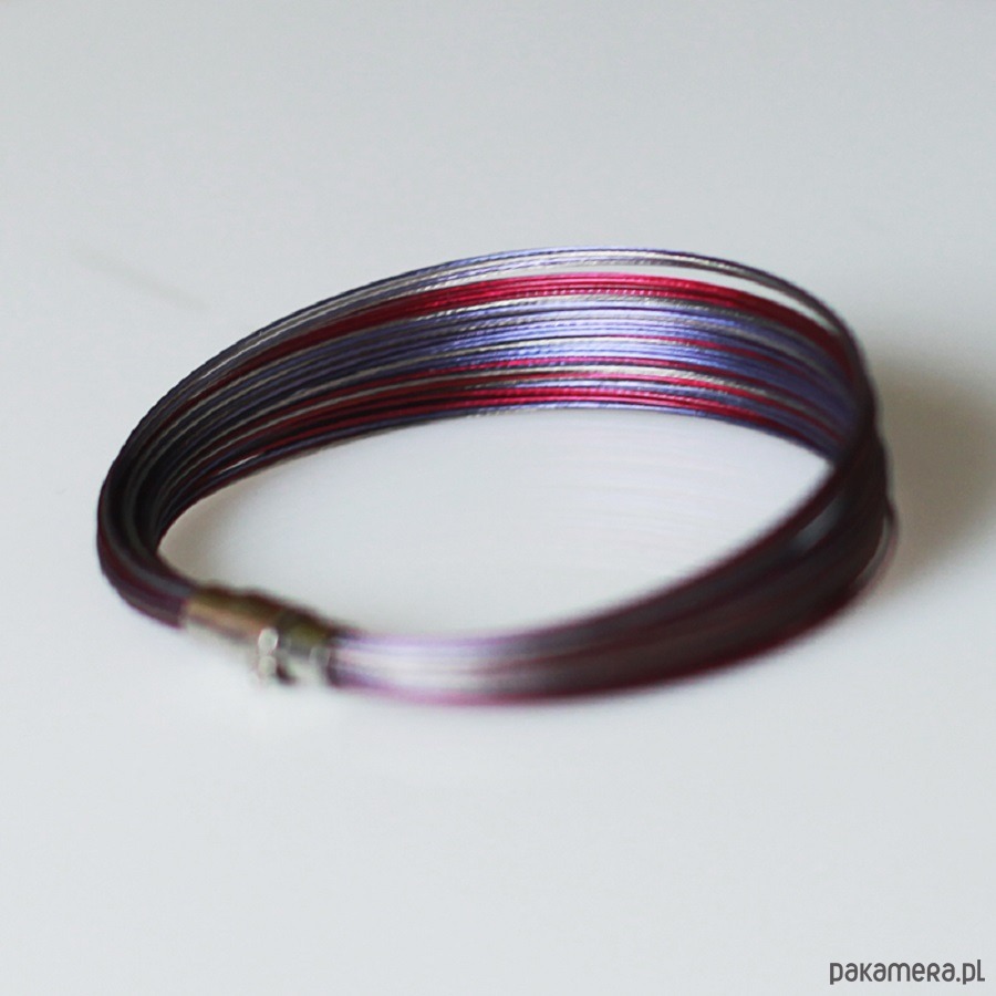 Zbudowana na bazie linki jubilerskiej w kolorze denim blue, bordo i srebra.