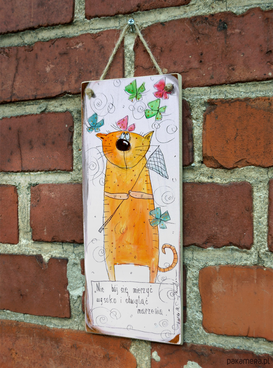 Reprodukcja autorskiej pracy, umieszczona na płycie MDF o grubości 6 mm, z zawieszką w postaci ekologicznego sznurka.