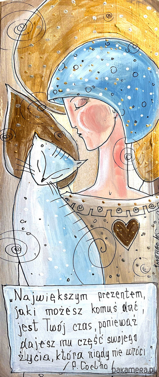 Reprodukcja autorskiej pracy, umieszczona na płycie MDF o grubości 6 mm, z zawieszką w postaci ekologicznego sznurka.