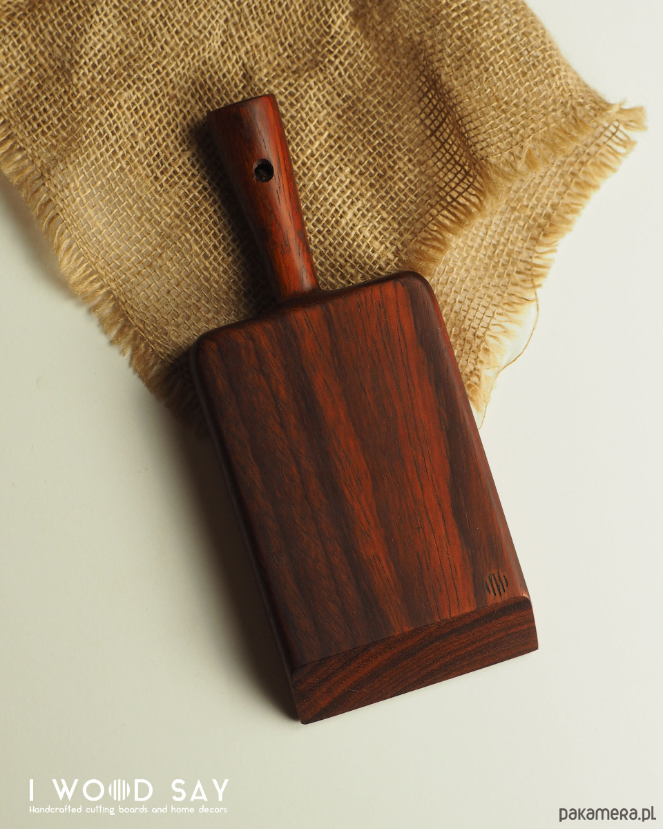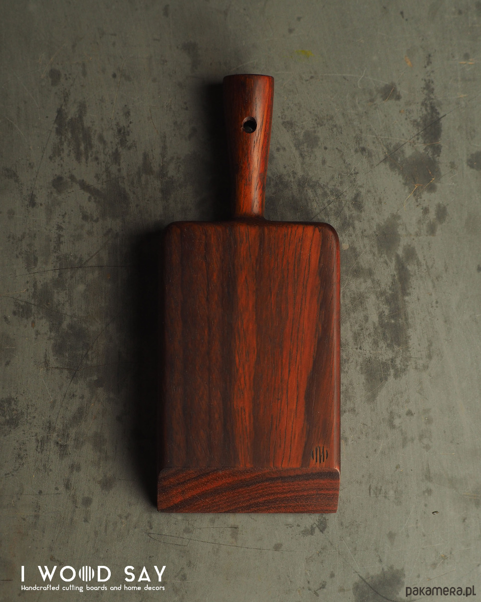 Dostępne w wersjach z litego drewna: krwistego padouku lub miodowego iroko.