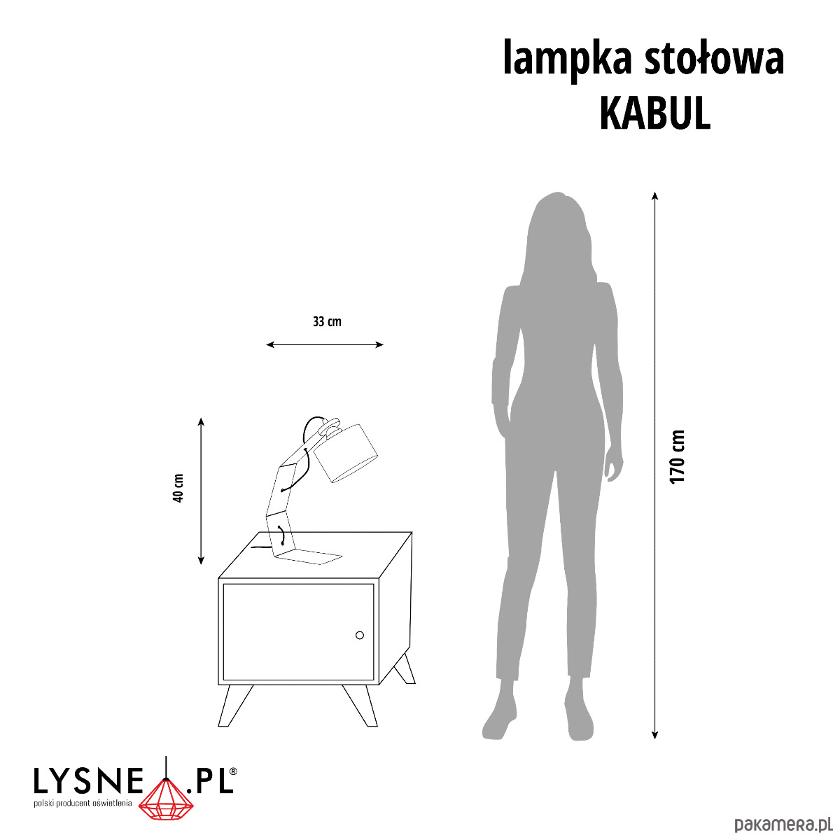 Wymiary lampy: wysokość - 40 cm, szerokość - 33 cm