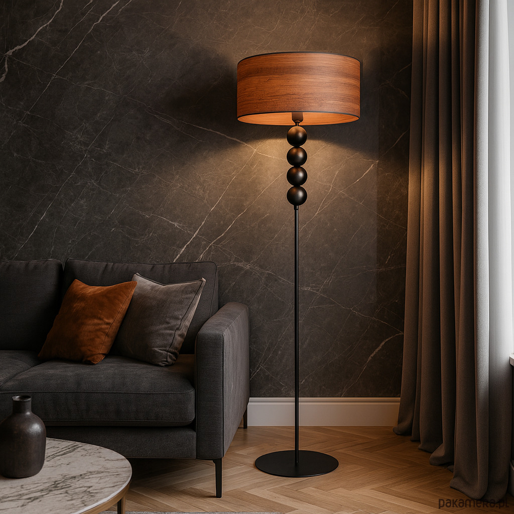 Nowoczesna lampa stojąca BERMUDY ECO to propozycja dla osób, które cenią elegancję, praktyczność i wysoką jakość wykonania "made in Poland". Ten model doskonale sprawdzi się jako lampa stojąca do salonu, sypialni czy biura wprowadzając do wnętrza przyjemne, ciepłe światło i stylowy akcent dekoracyjny. Stelaż stojącej lampy podłogowej zdobią cztery ozdobne kule, które nadają konstrukcji nowoczesnego charakteru i subtelnej lekkości. Dzięki temu ta minimalistyczna lampa stojąca z abażurem doskonale dopasuje się zarówno do wnętrz w stylu nowoczesnym, skandynawskim, industrialnym jak i klasycznym. Nowoczesna lampa podłogowa BERMUDY ECO stanie się efektownym dopełnieniem aranżacji zapewniając równocześnie funkcjonalne i komfortowe oświetlenie.