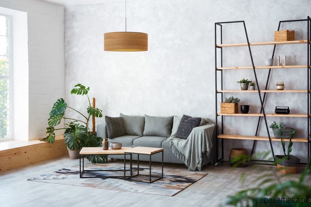 Materiał: stelaż - elementy metalowe, abażur - materiał PVC o strukturze forniru