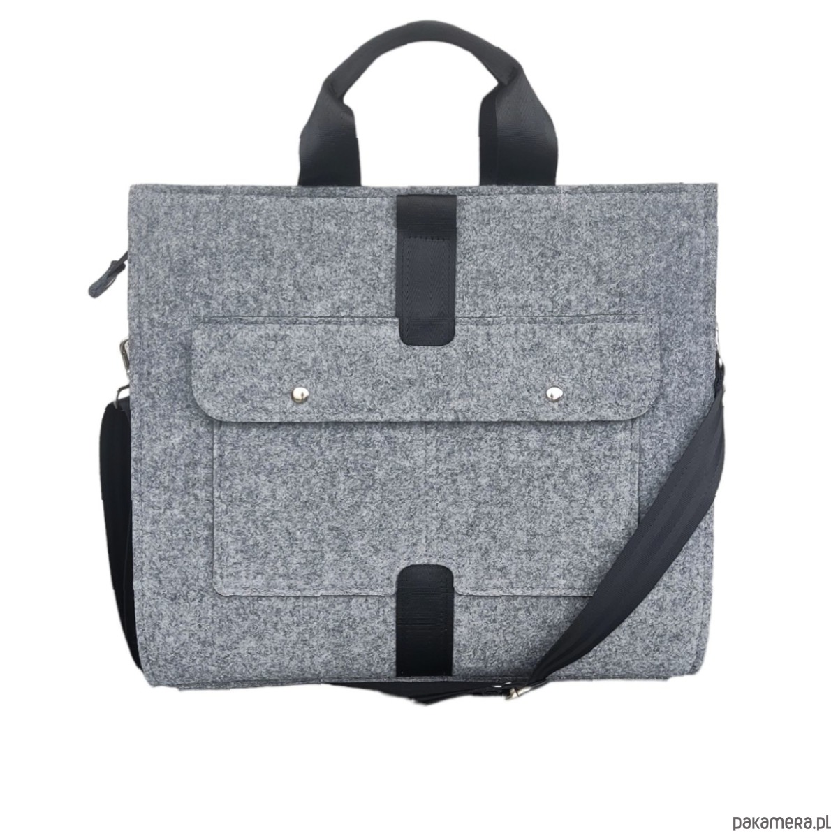 Nowoczesna, trwała i wygodna torebka filcowa. Najwygodniej nosić ją w ręce lub jako listonoszkę - na skos. Uszyta z filcu 100% poliestrowego. Na przodzie torebki filcowej duża kieszeń przedzielona na dwie komory i zamykana klapa na magnesy. Wewnątrz torebki wygodne kieszonki na klucze, telefon, dokumenty itp. Świetnie uporządkowane wnętrze. Torebka zamykana na zamek. Rączki uszyte z czarnej taśmy. Torebka ta nie będzie się mechacić ponieważ jest uszyta stroną impregnowaną na zewnątrz. Długi czarny pasek odczepiany na karabinki.