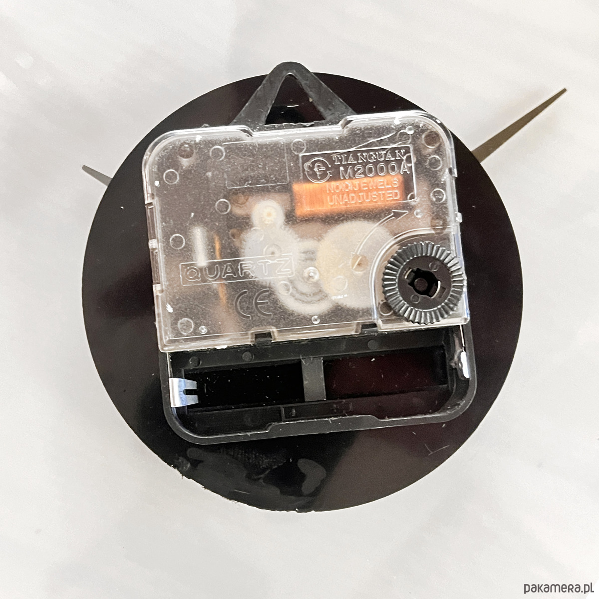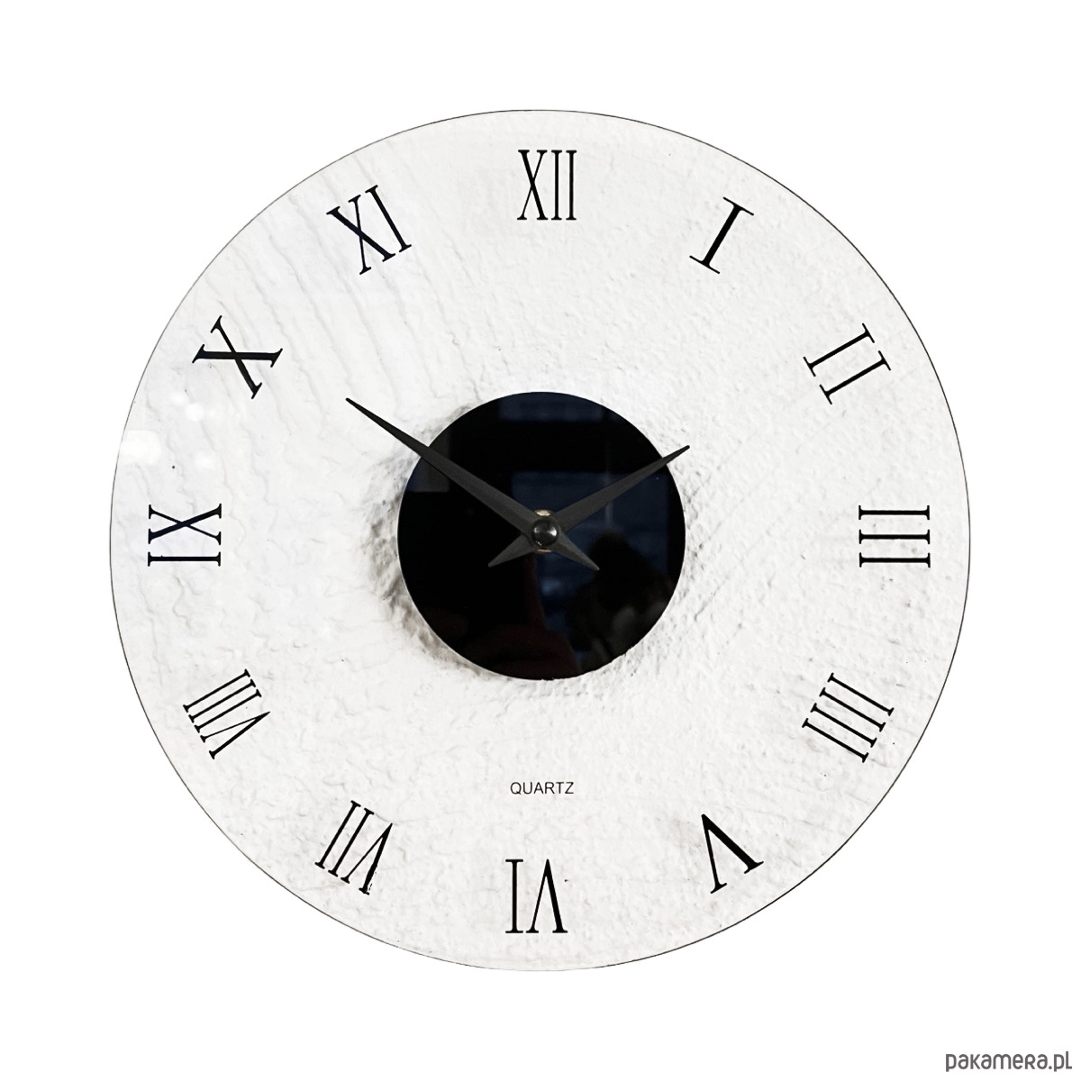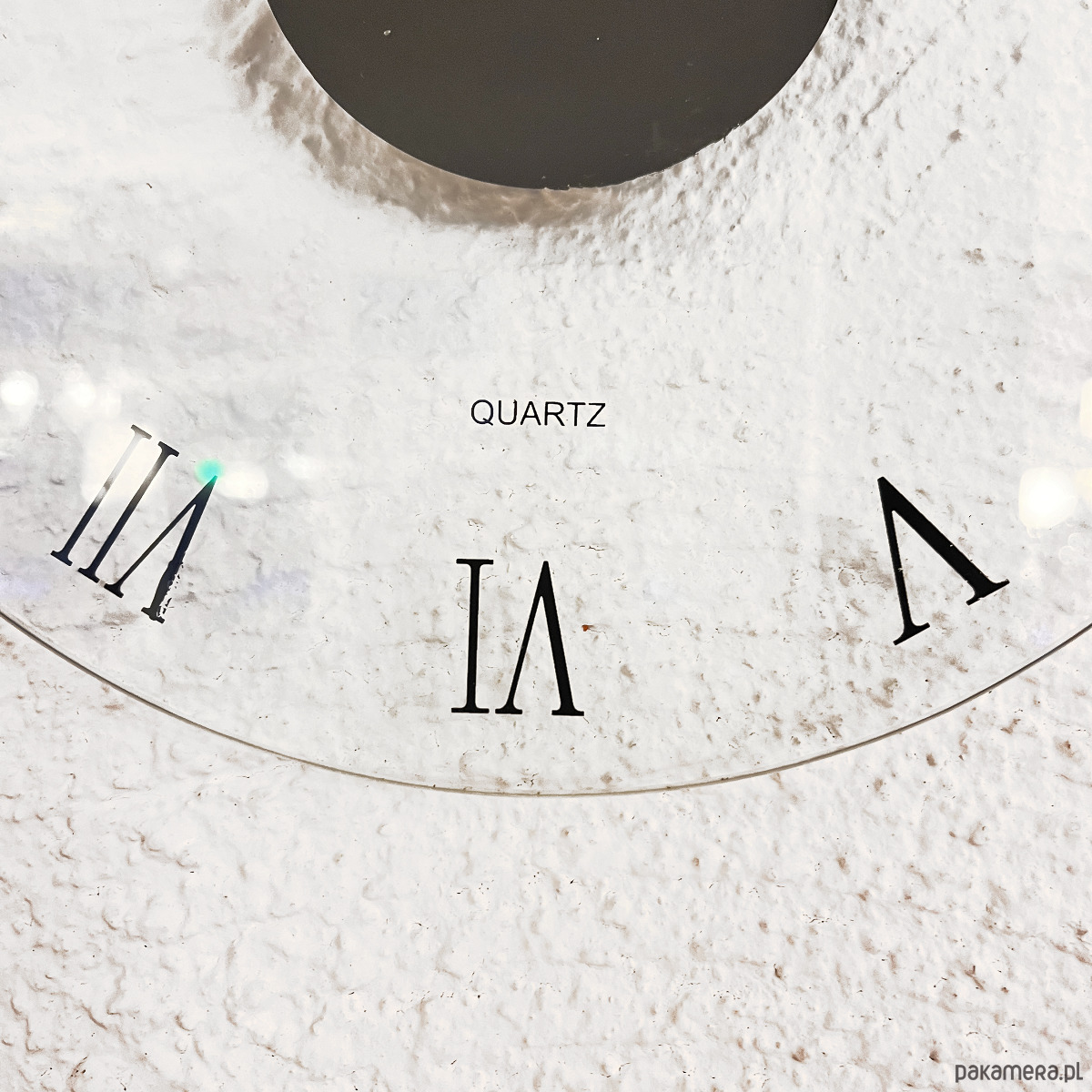 Niemiecki designerski zegar ścienny w stylu postmodernistycznym z lat 90. Tarcza wykonana jest z przeźroczystego szkła, proste wskazówki stalowe w czarnym kolorze, cyfry na cyferblacie rzymskie. Zegar zaprojektowany w Niemczech, mechanizm niemiecki. Zegar wyposażony jest w mechanizm kwarcowy, zasilany jedną baterią typu AA. Zegar w stanie bardzo dobrym, bez uszkodzeń.