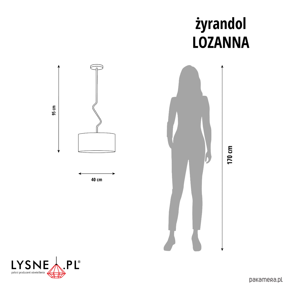 Wymiary lampy: wysokość - 95 cm - regulowana, szerokość - 40 cm