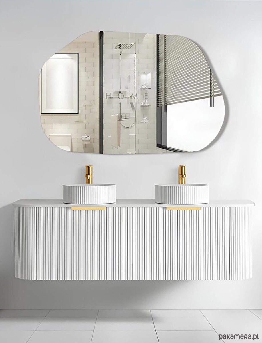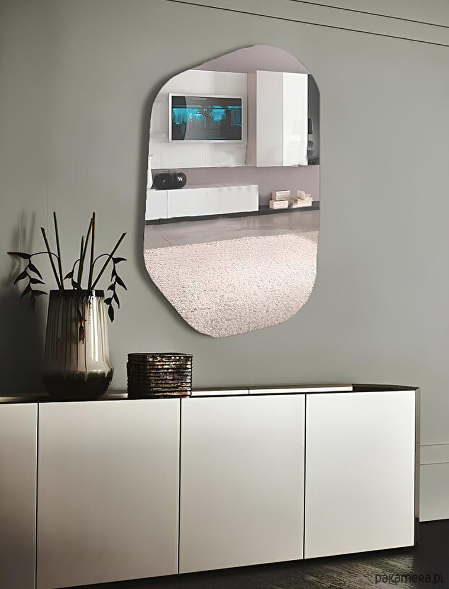 Dodaj nowoczesnego charakteru każdej przestrzeni dzięki naszemu pięknemu lustrzane asymetrycznemu! To lustro o wymiarach 85 x 55 cm nie wymaga ramy, dzięki czemu stanowi oszałamiający element dekoracyjny. Idealnie nadaje się do salonu, sypialni, przedpokoju czy łazienki.