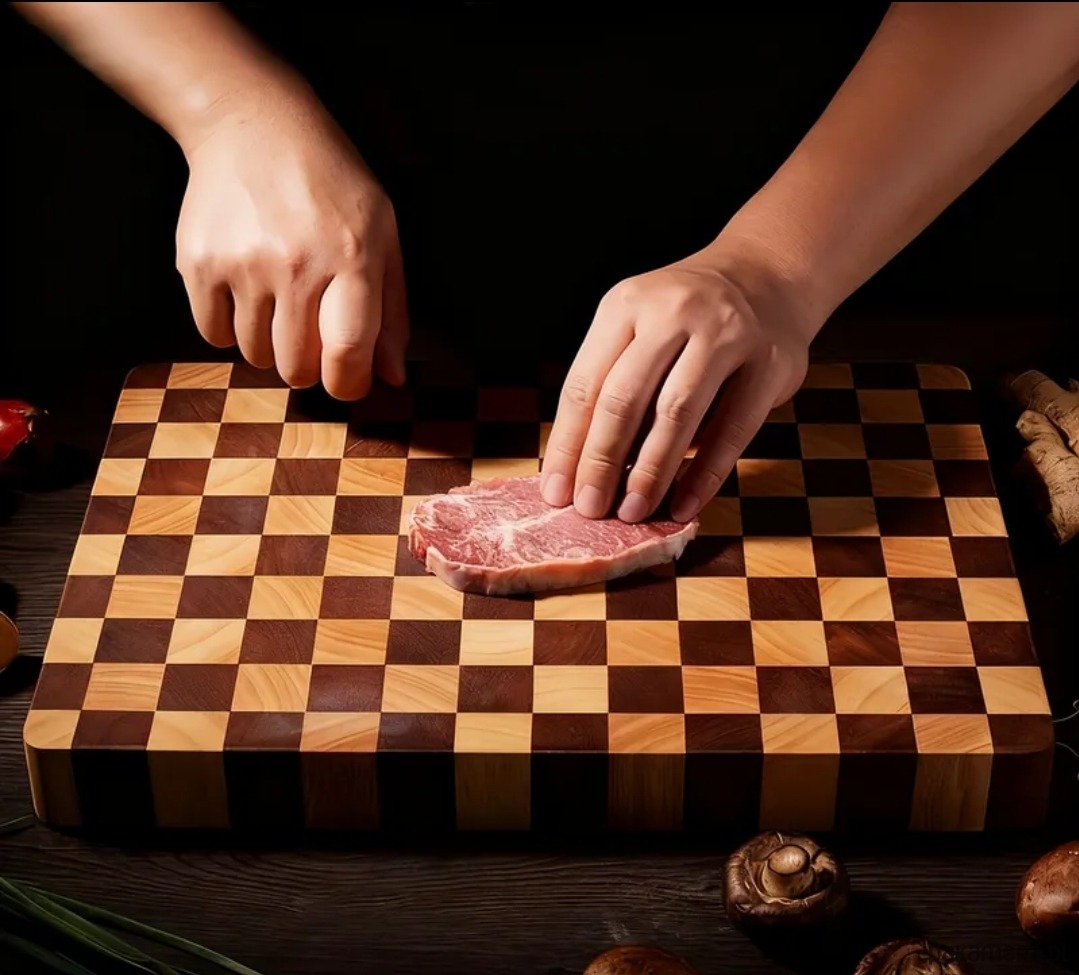 Duża deska do krojenia, sztorcowa co nadaje wytrzymałości i nie tępi noży.