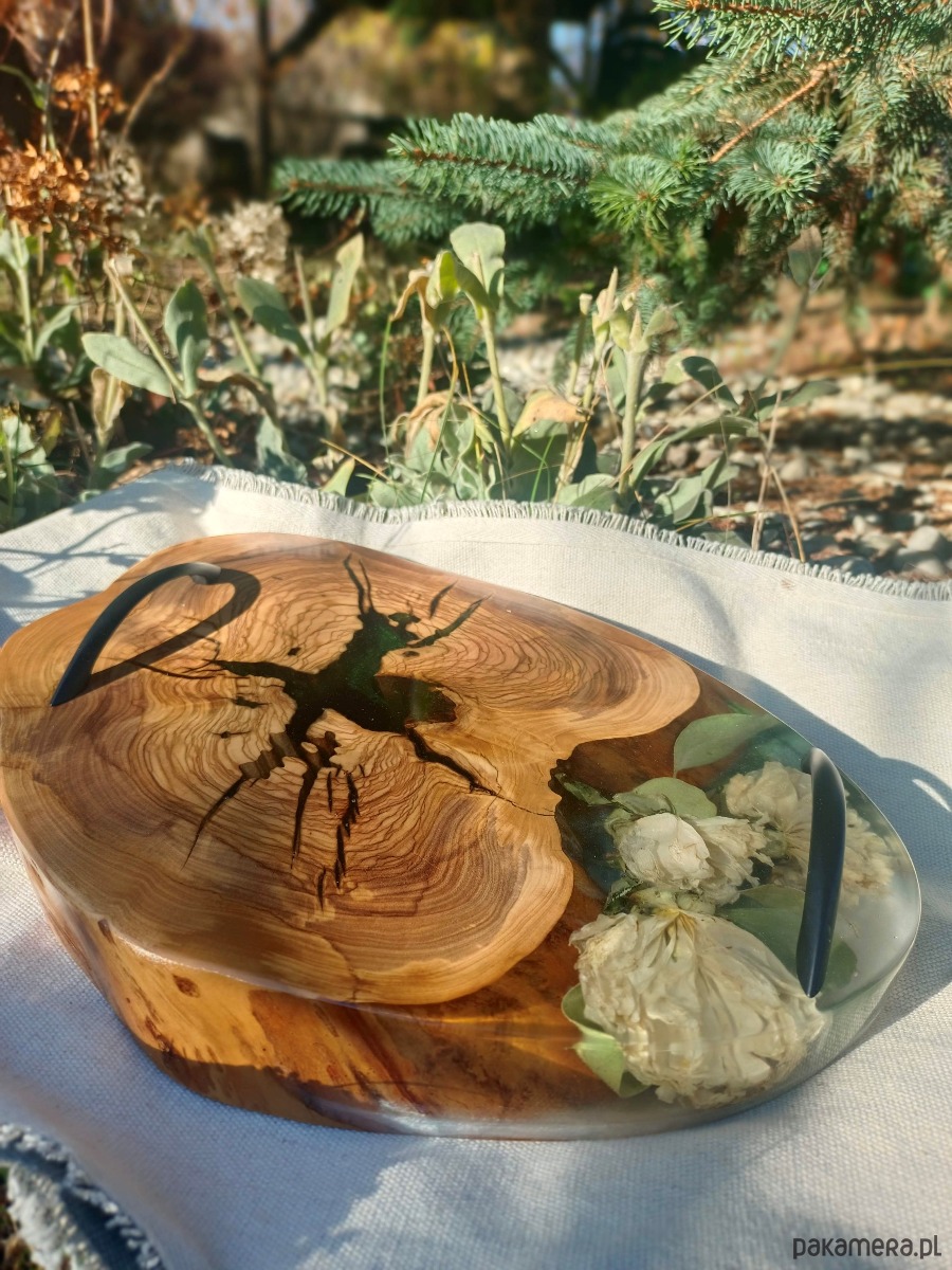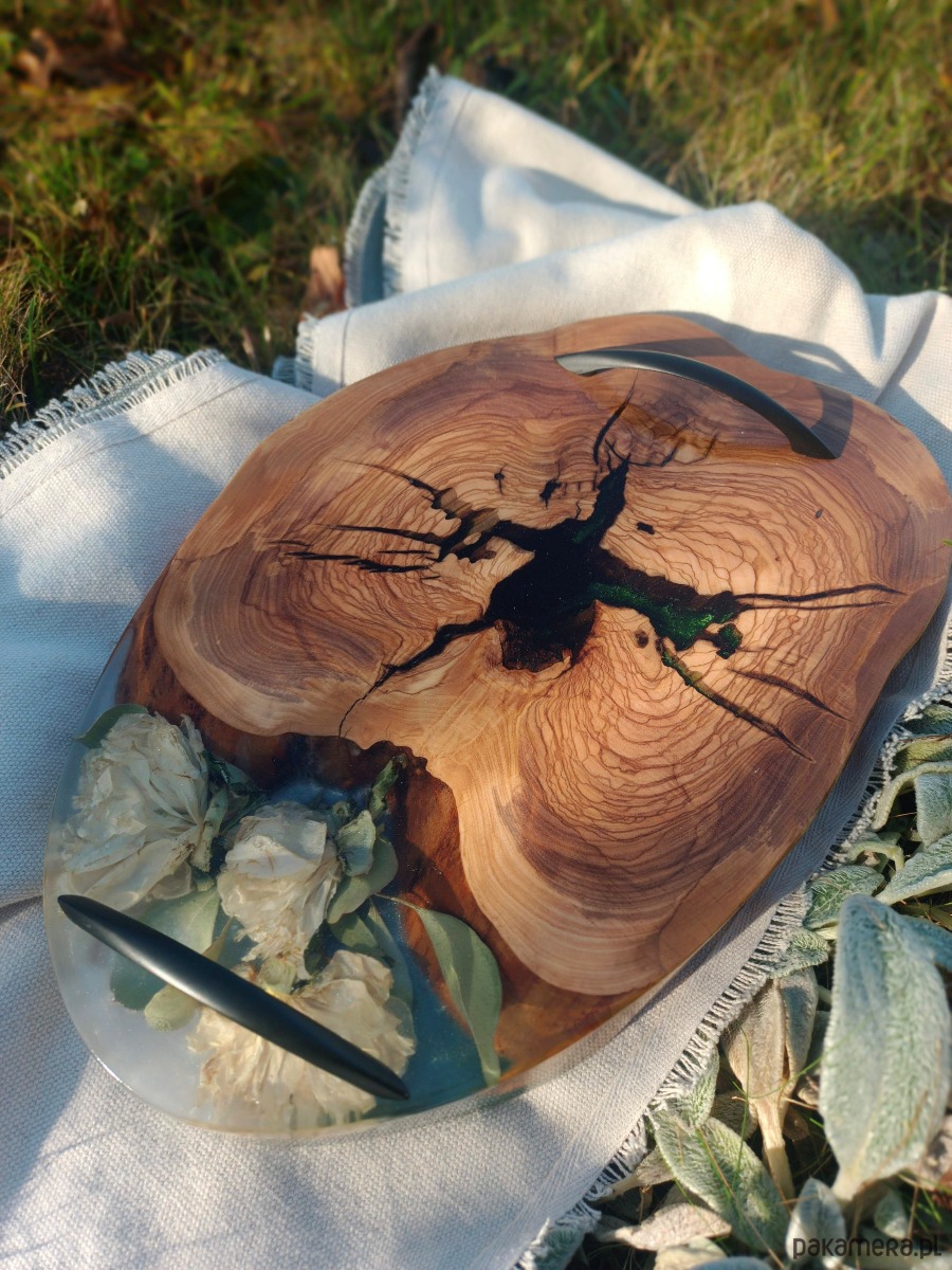 Deska do serwowania z drewnem oliwnym i żywicą