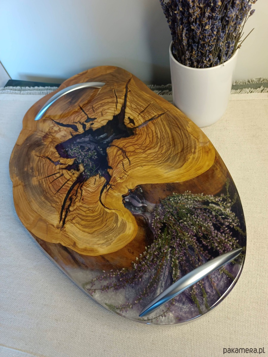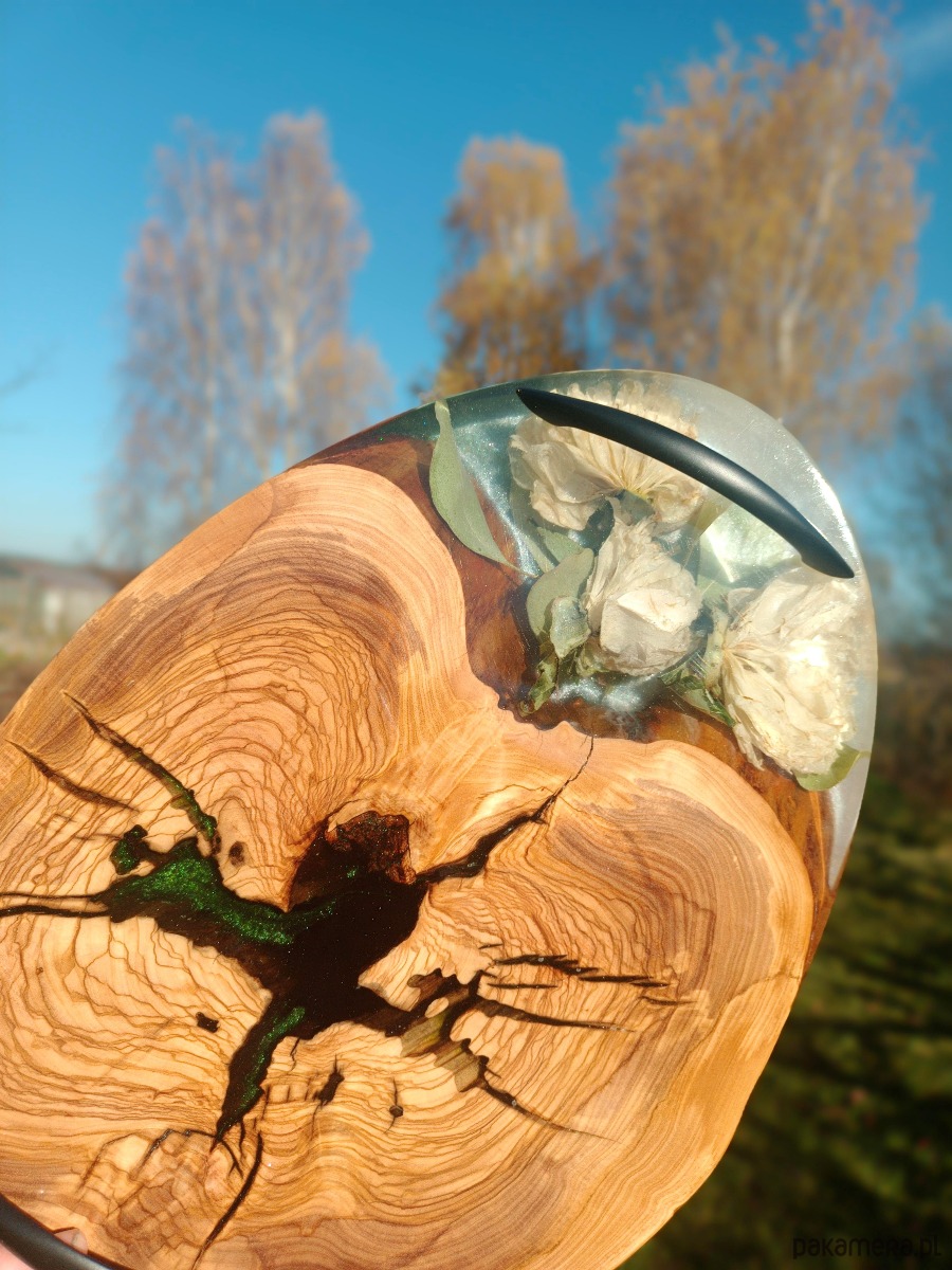 🌿 drewno oliwne, żywica epoksydowa i kompozycja z naturalnych kwiatów