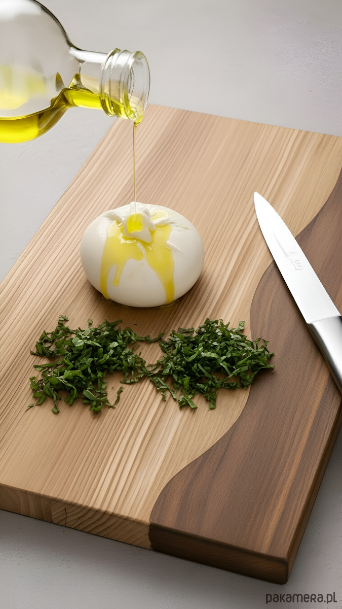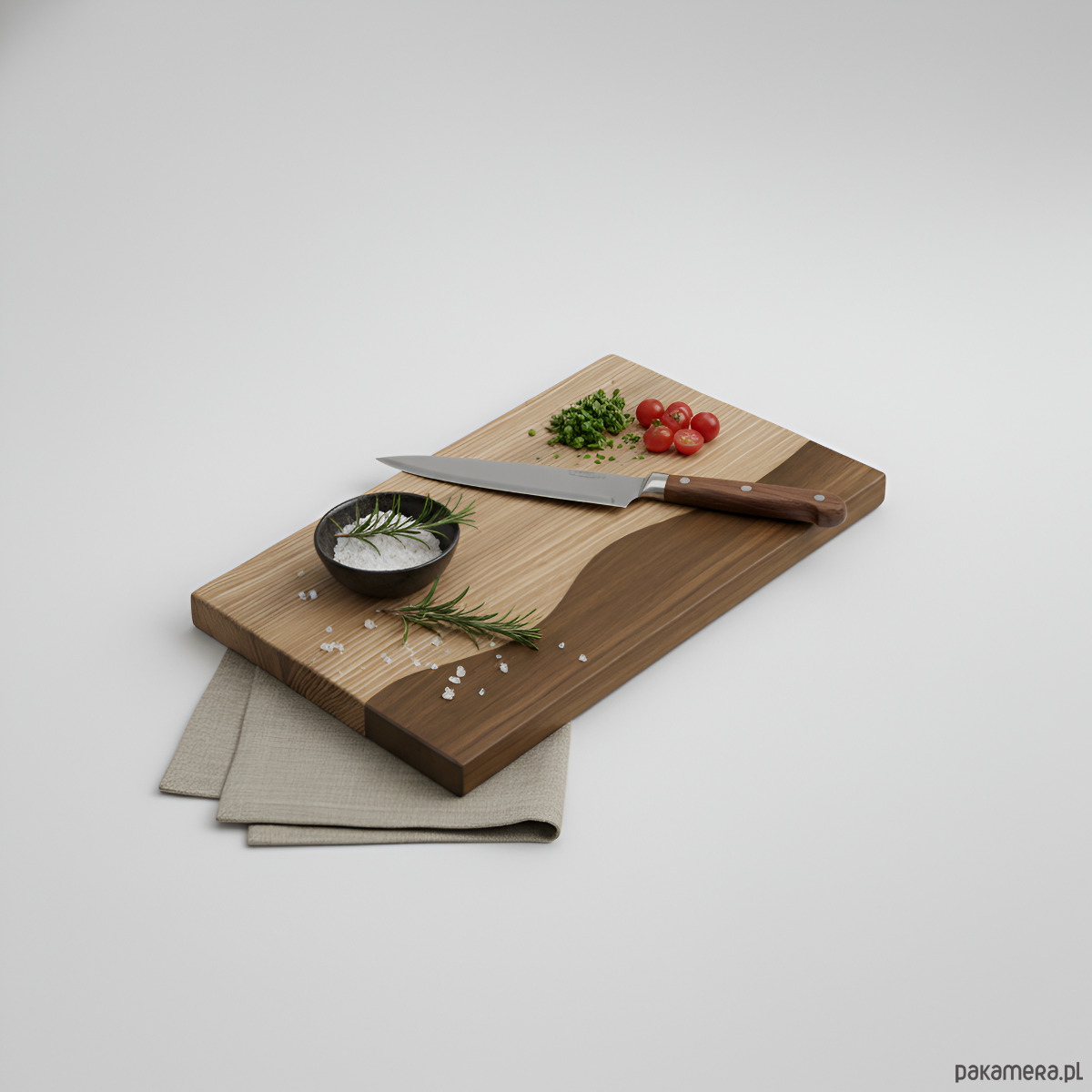FALA to deska do krojenia wykonana z dwóch gatunków drewna: dębu i orzechu. Harmonijna kompozycja kontrastów – jasna część wprowadza lekkość, podczas gdy ciemniejsze drewno nadaje całości głębi i szlachetności. Organiczna linia łączenia obydwu odcieni przypomina naturalny przepływ materiału, podkreślając unikatowy charakter projektu.To deska zaprojektowana z myślą o estetyce współczesnych kuchni – prosta, elegancka i pełna subtelnych detali, które przyciągają uwagę przy każdym użyciu.