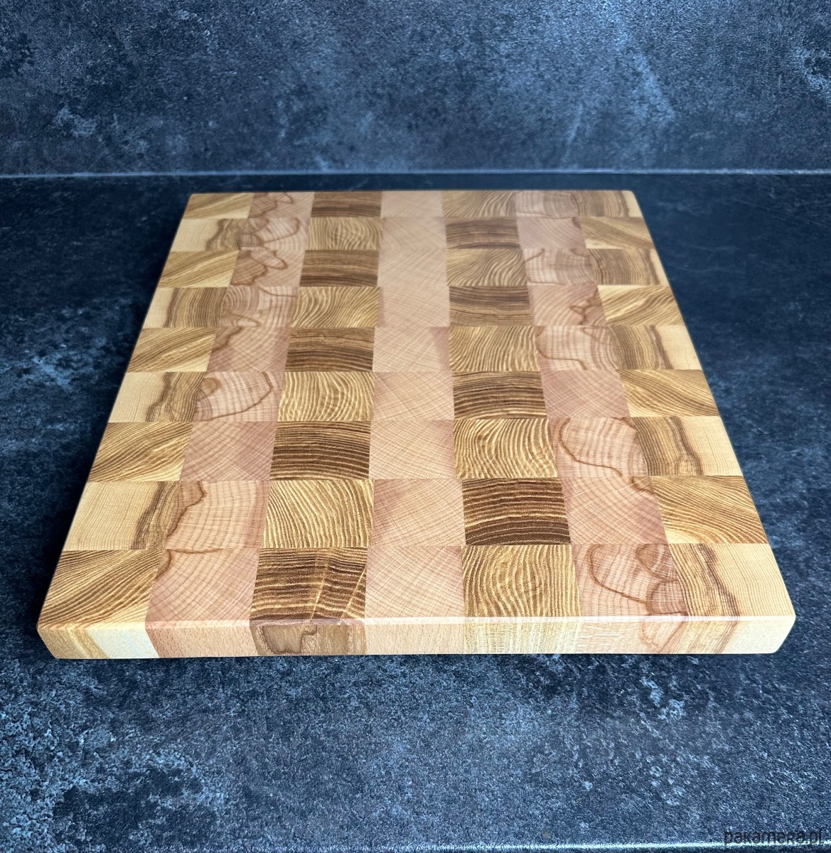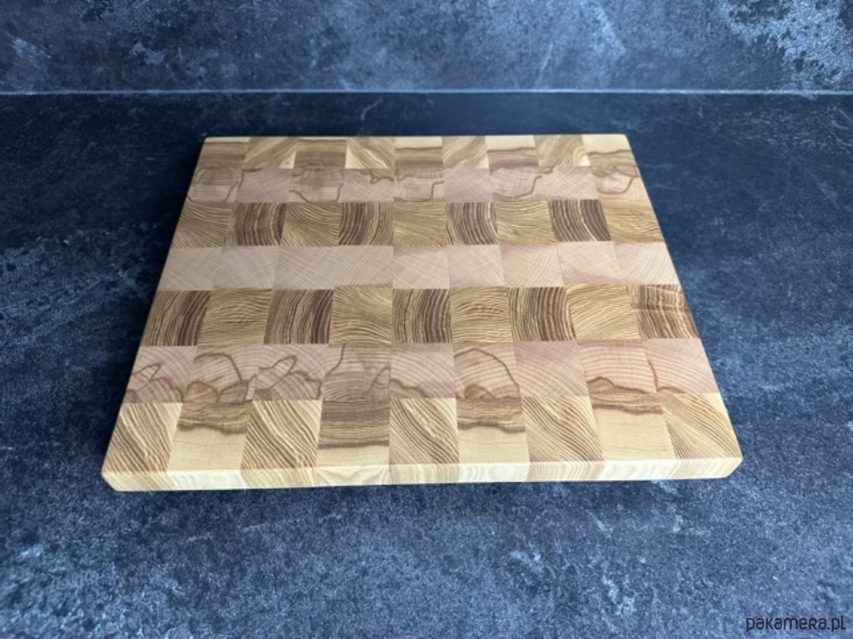 Deska sztorcowa z parzonego buku i jesionu w układzie kostki to połączenie solidności i naturalnej elegancji. Parzony buk ma charakterystyczny różowo-łososiowy odcień, który pięknie kontrastuje z jasnym, spokojnym jesionem. Efekt jest nowoczesny, ciepły i bardzo „premium” na kuchennym blacie.