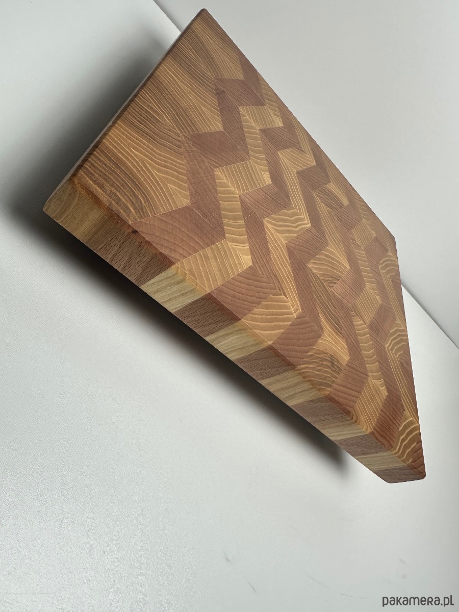 Wyjątkowa, masywna deska sztorcowa z jesionu w eleganckim wzorze chevron to połączenie trwałości i ponadczasowego designu. Naturalne usłojenie drewna ułożone w jodełkę sprawia, że każda sztuka jest niepowtarzalna i pięknie prezentuje się zarówno podczas pracy, jak i serwowania.