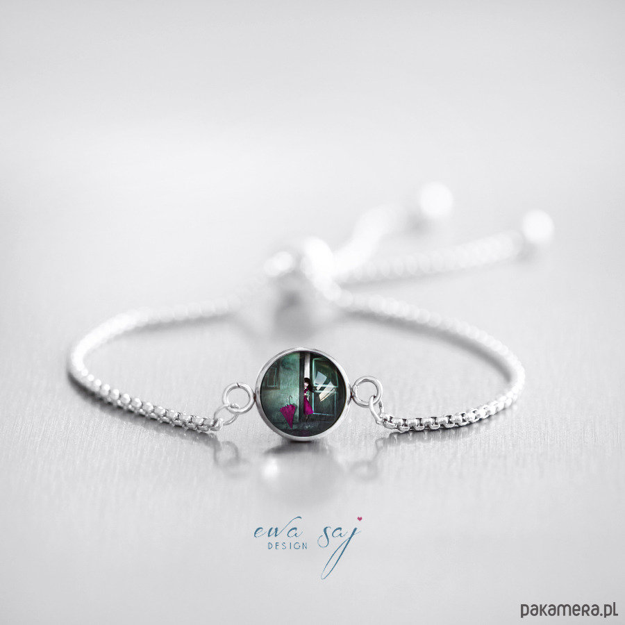Piękna, delikatna, kobieca bransoletka wykonana ze stali nierdzewnej. Autorska fotografia została ukryta pod 10 mm wypukłym szkiełkiem. Silikonowy zacisk pozwala dostosować bransoletkę do każdego nadgarstka