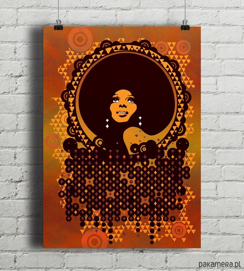 Autorski plakat inspirowany piosenkarką i aktorką Dianą Ross. Nawiązuje do soulowych plakatów muzycznych z lat 6o-tych i 70-tych XX wieku.
