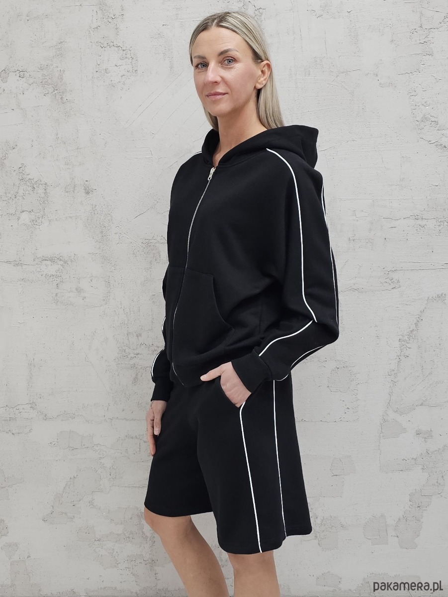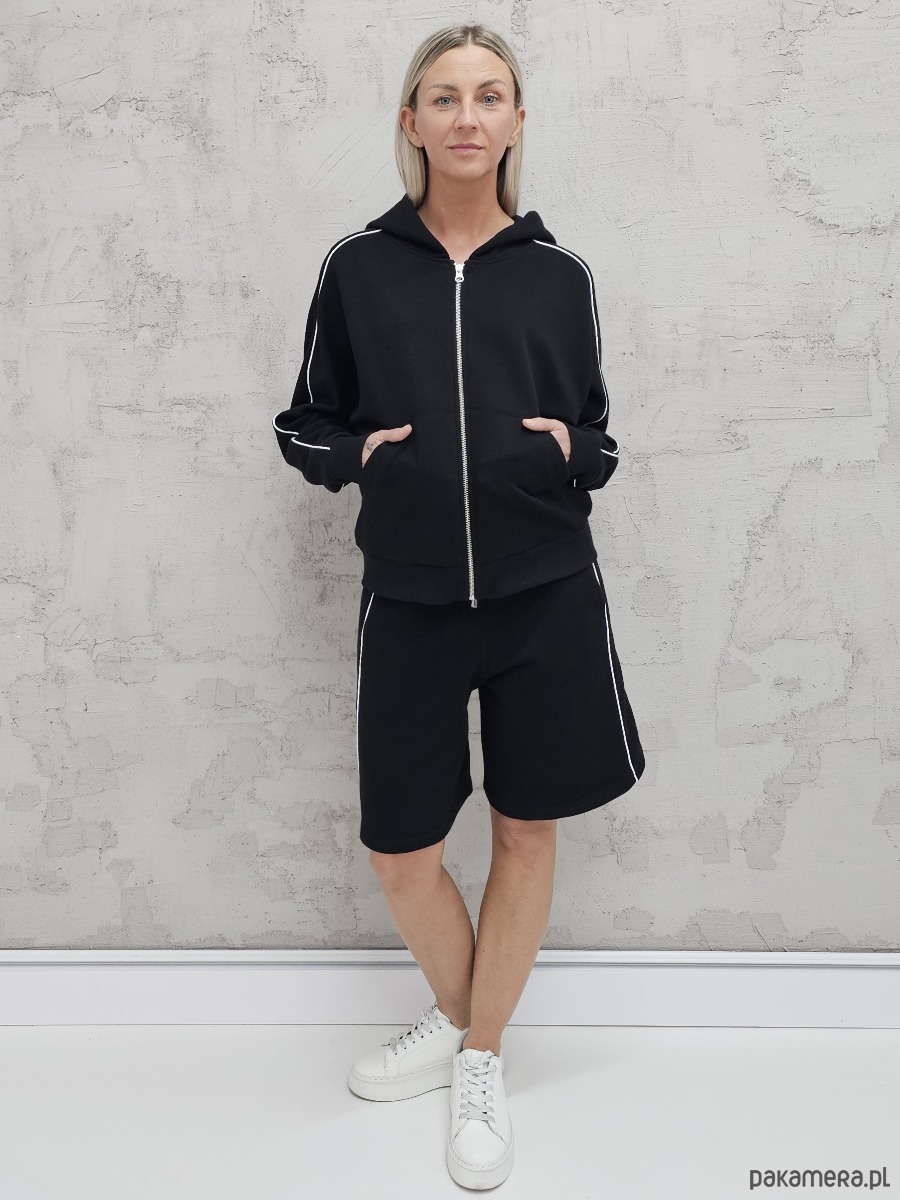 Dita komplet bluza na zamek i spodenki z lamówkamii Black