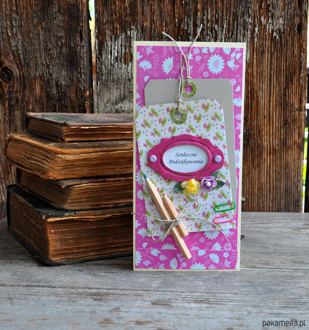 Piękna i wyjątkowa kartka okolicznościowa na podziękowania dla nauczyciela, na zakończenie roku szkolnego, Dzień Nauczyciela itp.; rozmiar 10x21cm, w komplecie koperta; zapraszam