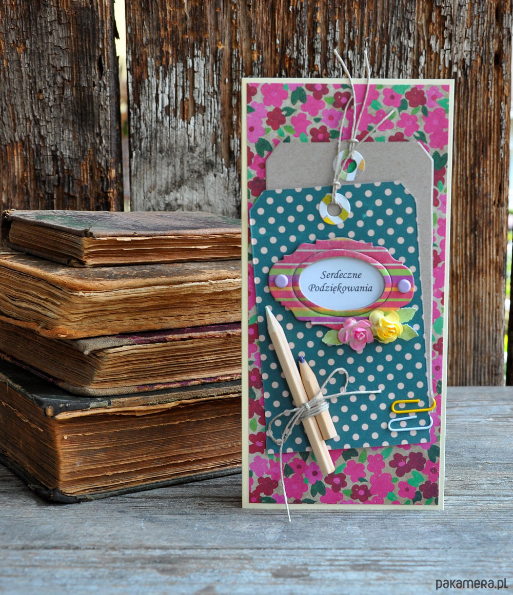Piękna i wyjątkowa kartka okolicznościowa na podziękowania dla nauczyciela, na zakończenie roku szkolnego, Dzień Nauczyciela itp.; rozmiar 10x21cm, w komplecie koperta; zapraszam