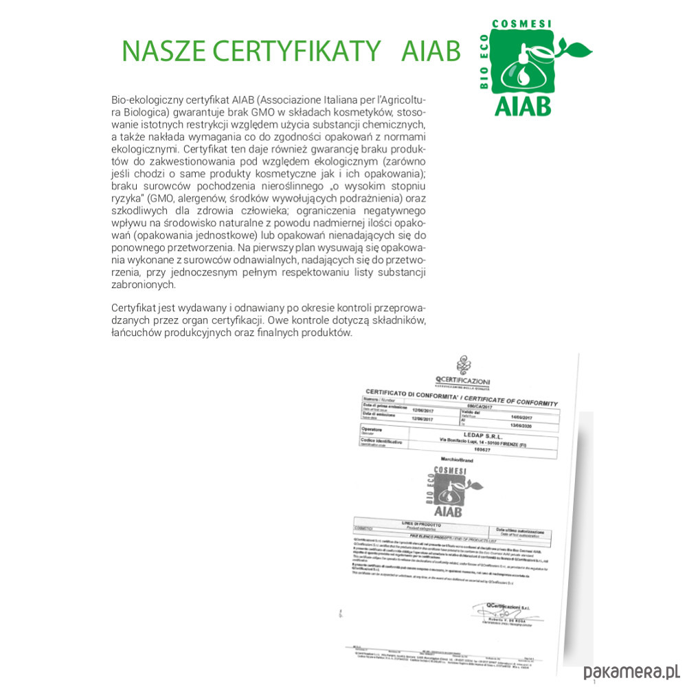 Certyfikowane, wytwarzane metodami ekologicznymi składniki, w 100% naturalne, WYPRODUKOWANE WE WŁOSZECH