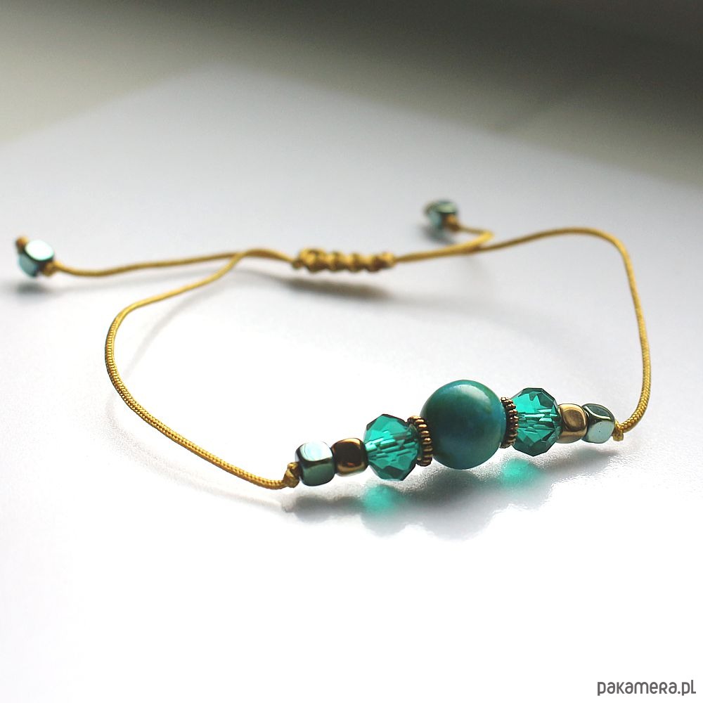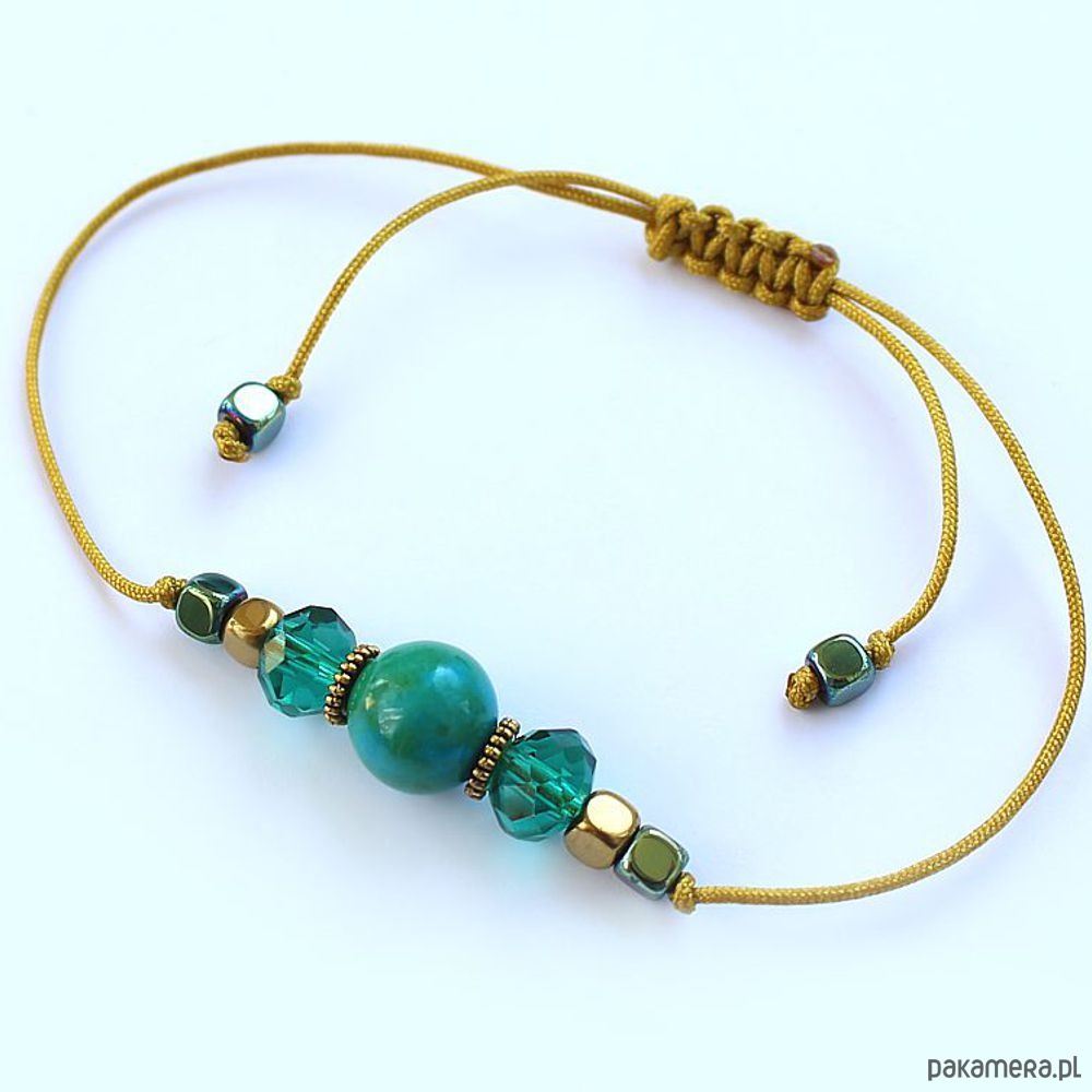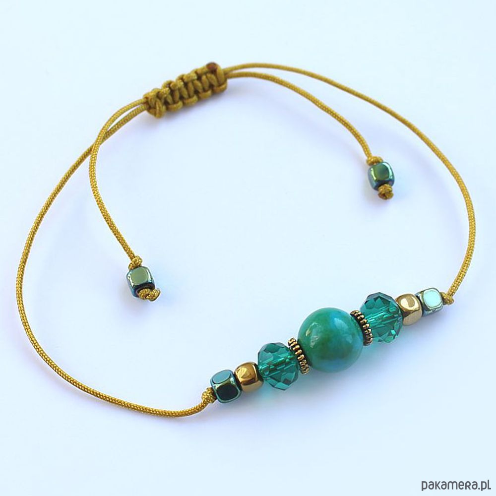 Rodzaj produktu: bransoletka shamballa z regulacją na woskowanym złotym sznurku
