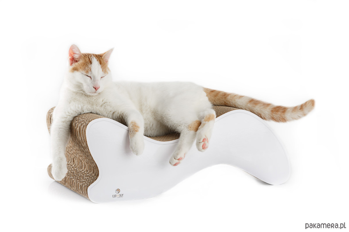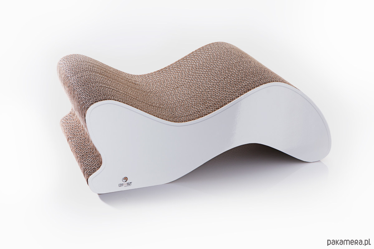 Zakrzywiony kształt zapewnia kotu możliwość komfortowego wylegiwania się, a struktura tektury zachęca do drapania. Drapak jest dwustronny.