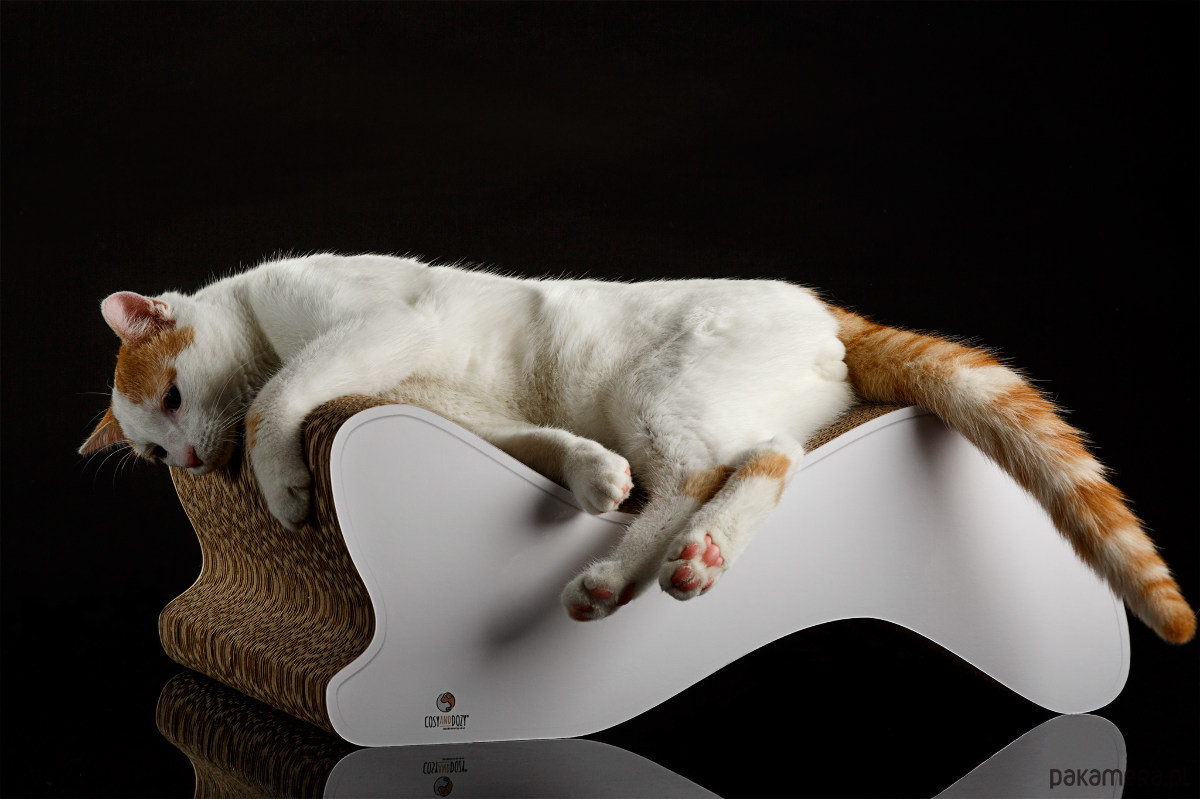 Koty uwielbiają tekturę we wszystkich możliwych rozmiarach i kształtach. Gdy tylko w ich otoczeniu pojawi się kartonowy mebel, bardzo chętnie z niego korzystają.