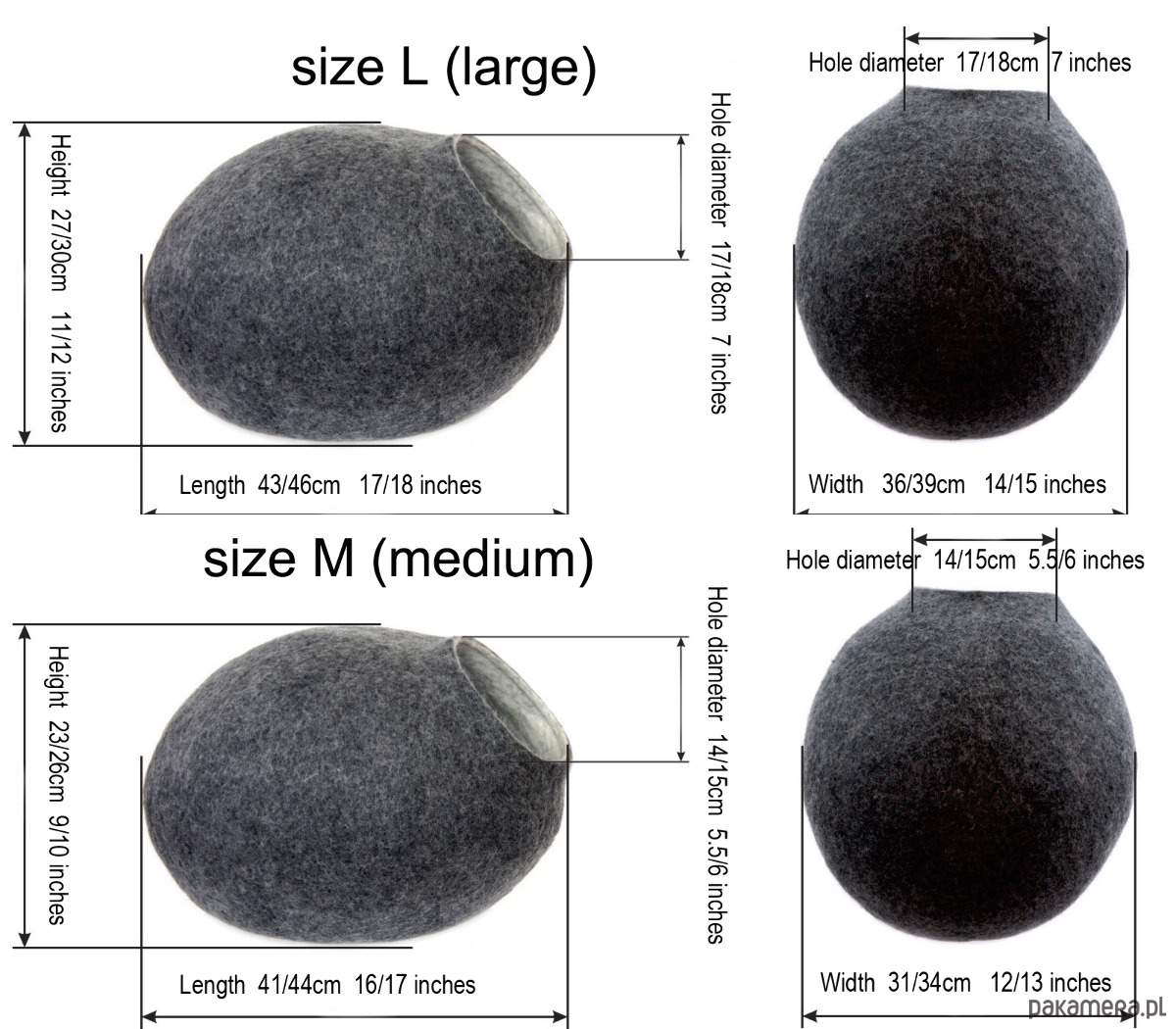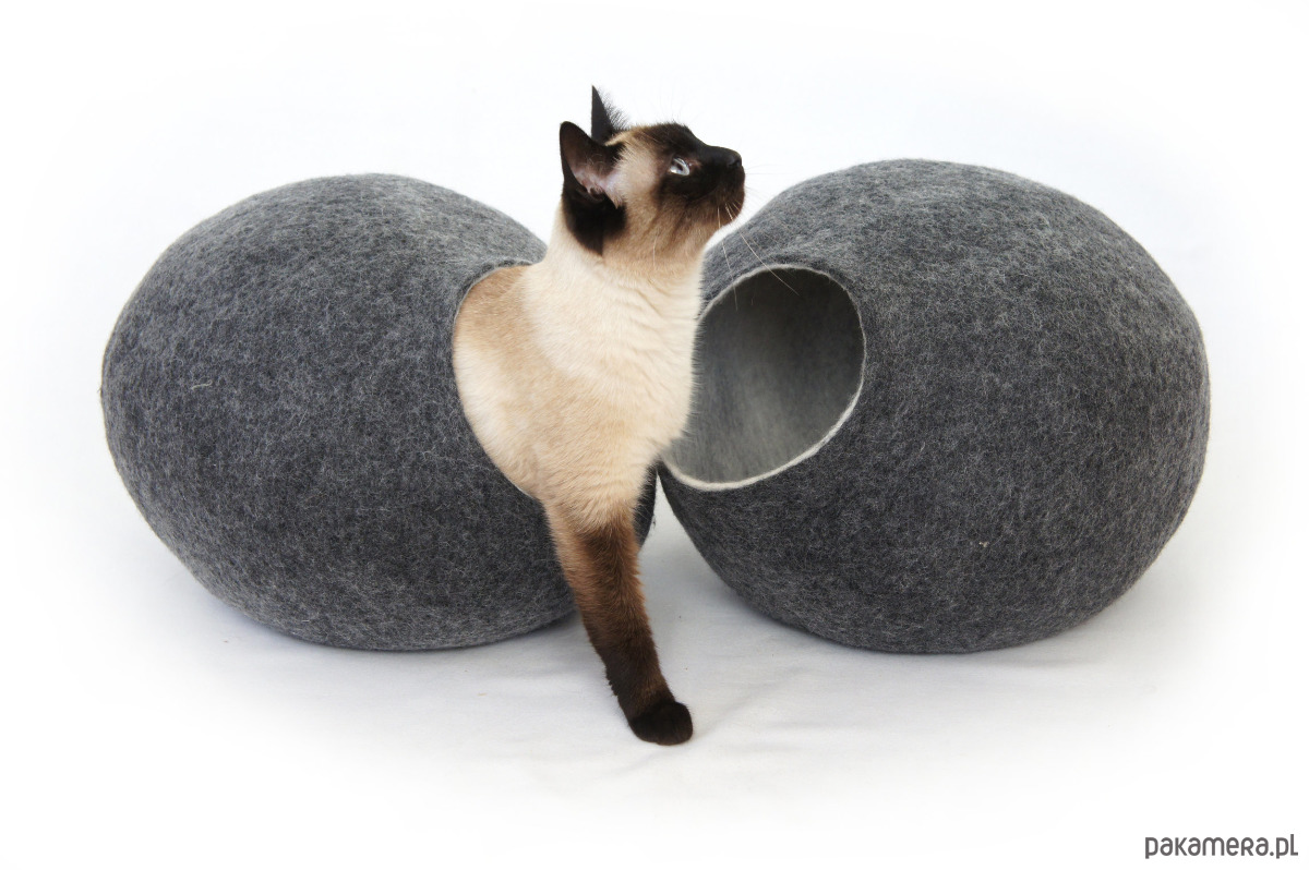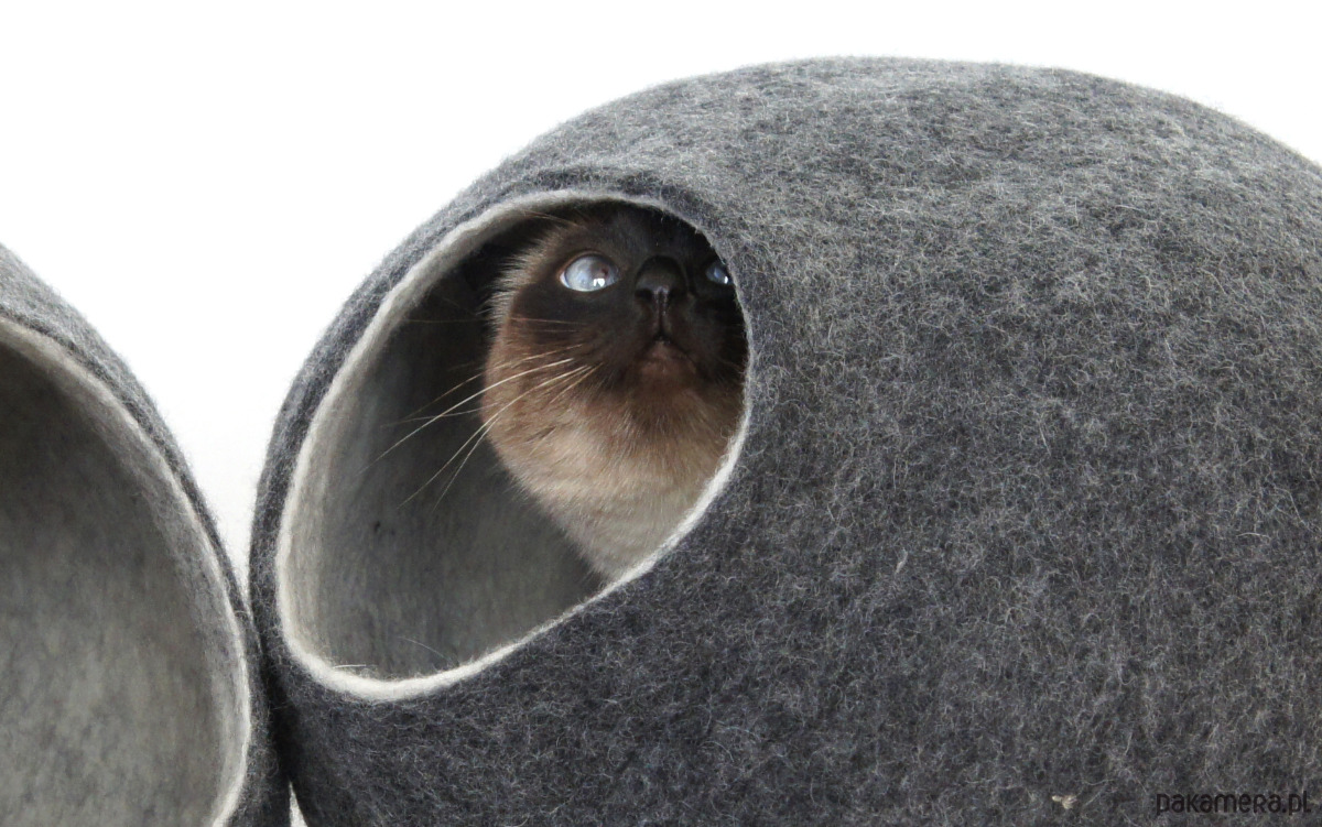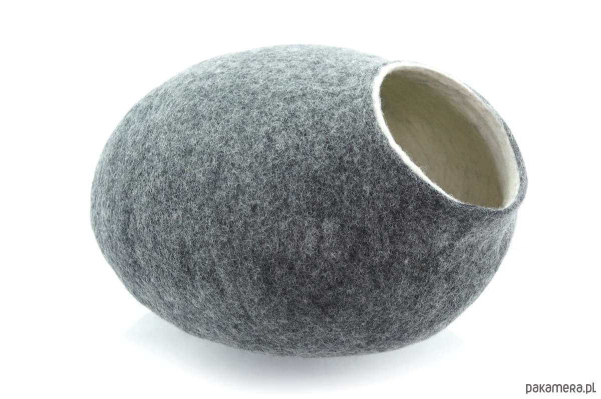 Nowoczesny, zaprojektowany ze smakiem kokon dla kota, wykonany z naturalnej, ekologicznej ręcznie filcowanej wełny merynosów. Doskonale posłuży Twojemu kotu jako miejsce do spania i szalonej zabawy. Wełna daje miękkość i ciepło, sprawia, że wnętrze jest niezwykle przytulne. Dzięki wysokiej jakości wykonania i trwałości produkt będzie Wam służył przez lata. Prosty, atrakcyjny design, który kolorystycznie doskonale wkomponuje się we wnętrze Twojego mieszkania. Wymiary i/lub waga Każdy kokon jest wykonywany ręcznie, stąd wymiary poszczególnych egzemplarzy mogą się od siebie nieznacznie różnić. Długość:43/46cm Szerokość:36/39cm Wysokość:27/30cm Średnica otworu:17/18cm Wykorzystane materiały Ekologiczna wełna merynosów, ręcznie filcowana. Kolor:szary Metoda produkcji Handmade (wykonywany ręcznie) Indywidualne zamówienia W przypadku zainteresowania zamówieniem większej ilości, prosimy o kontakt.
