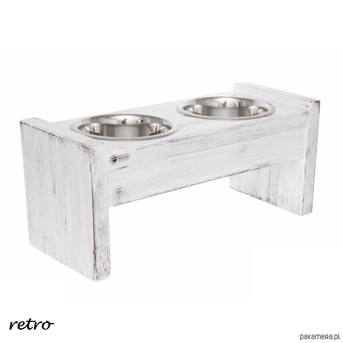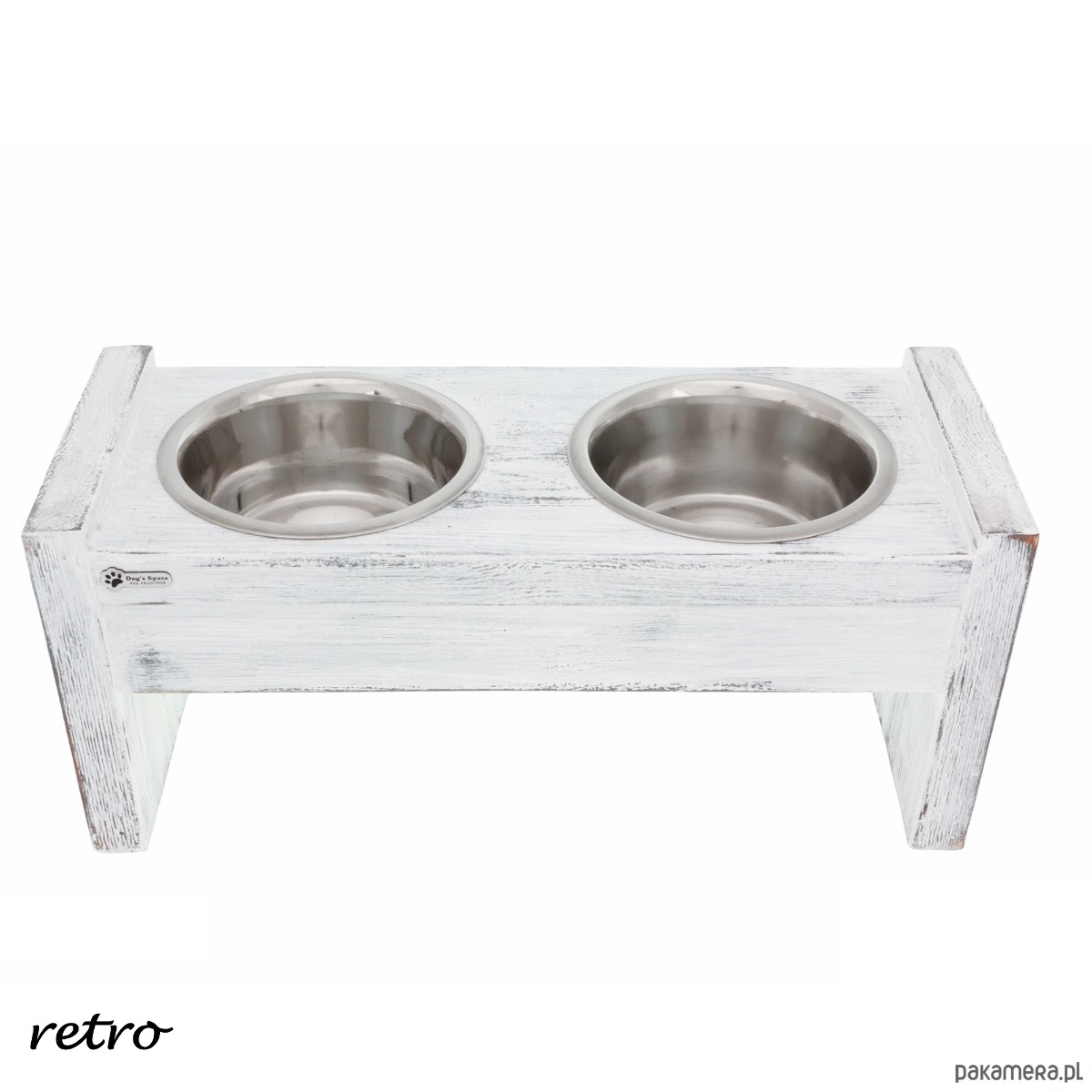 Psi BUFET - drewniany, ręcznie wykonany stojak na psie miski.