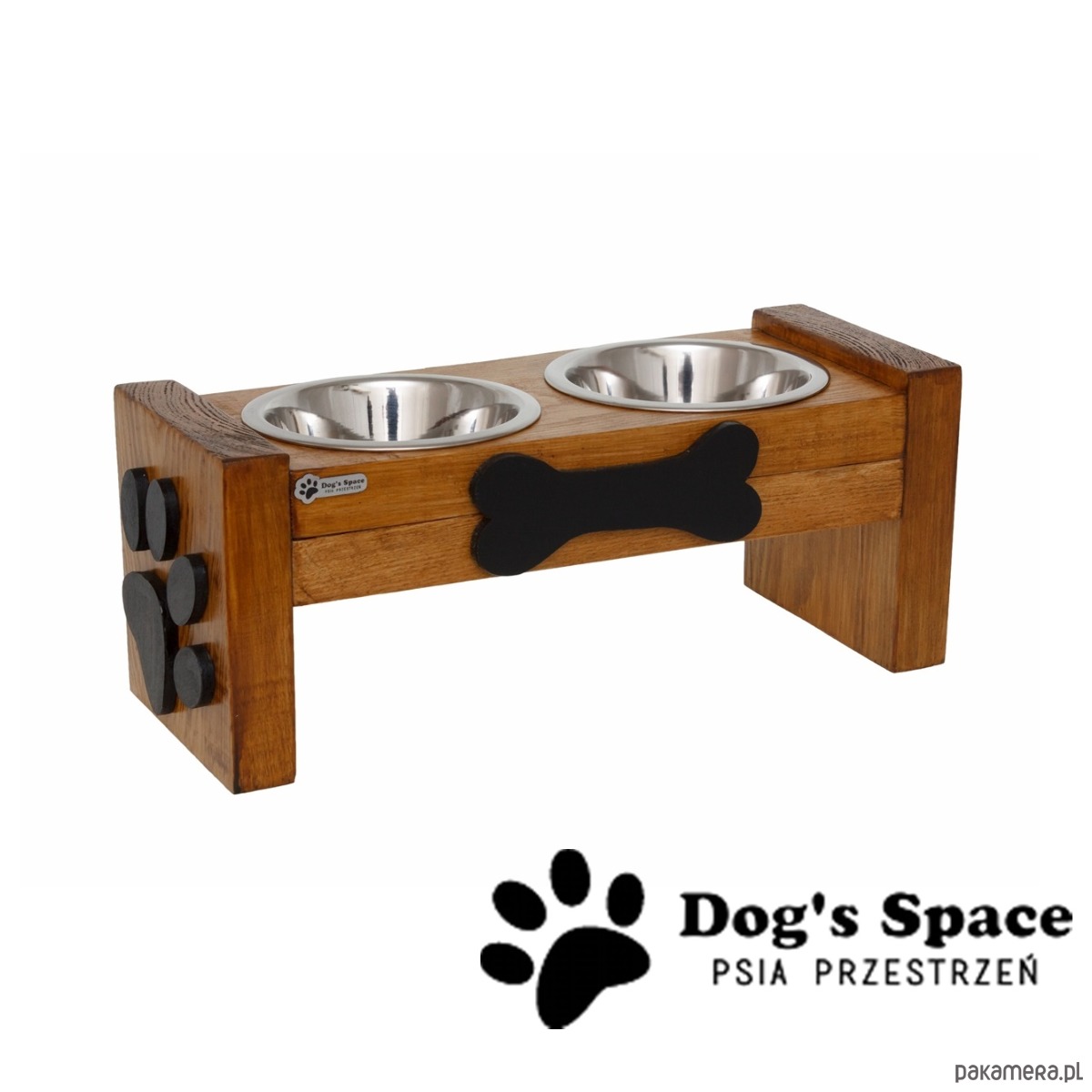 Psi BUFET - drewniany, ręcznie wykonany stojak na psie miski.