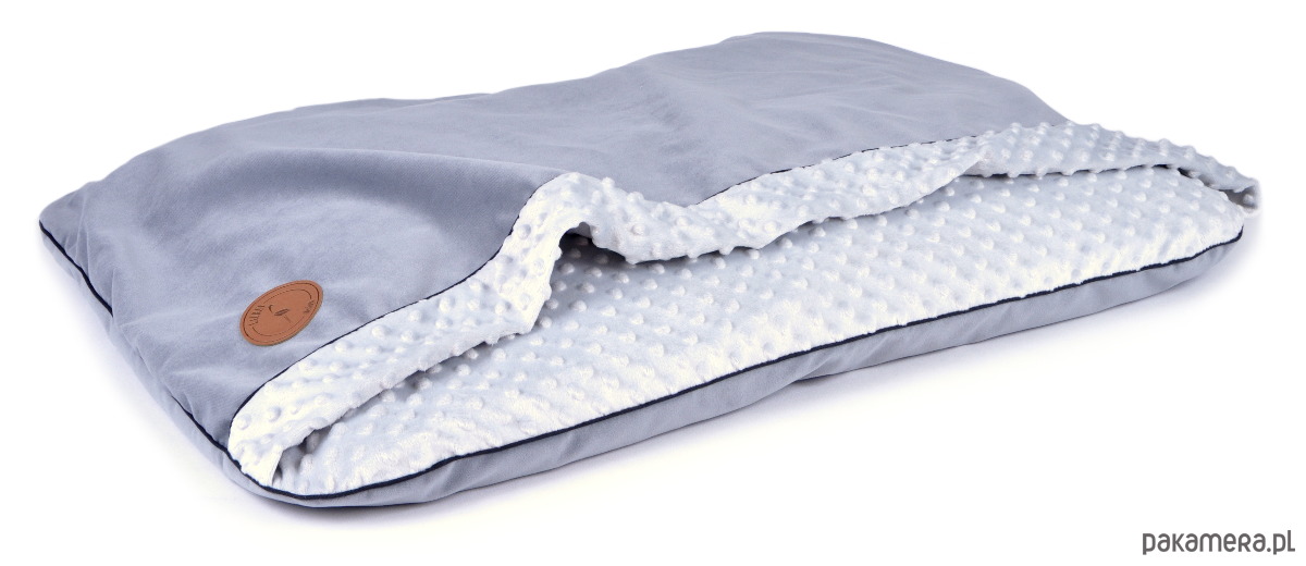 Dolna część legowiska wypełniona lekkimi i sprężystymi kawałeczkami gąbki, które miękko dopasują się do ciała psa. Zastosowane wypełnienie nie traci swoich właściwości nawet po długim okresie użytkowania. Pokrycie posłania uszyte zostało z połączenia dwóch tkanin: delikatnego i przyjemnego w dotyku minky od wewnątrz oraz gładkiego, krótkowłosego aksamitu od zewnątrz. Wierzchnia warstwa, pod którą zwierzak się chowa jest nieco większa od dolnej poduszki, aby mógł swobodnie wejść.
