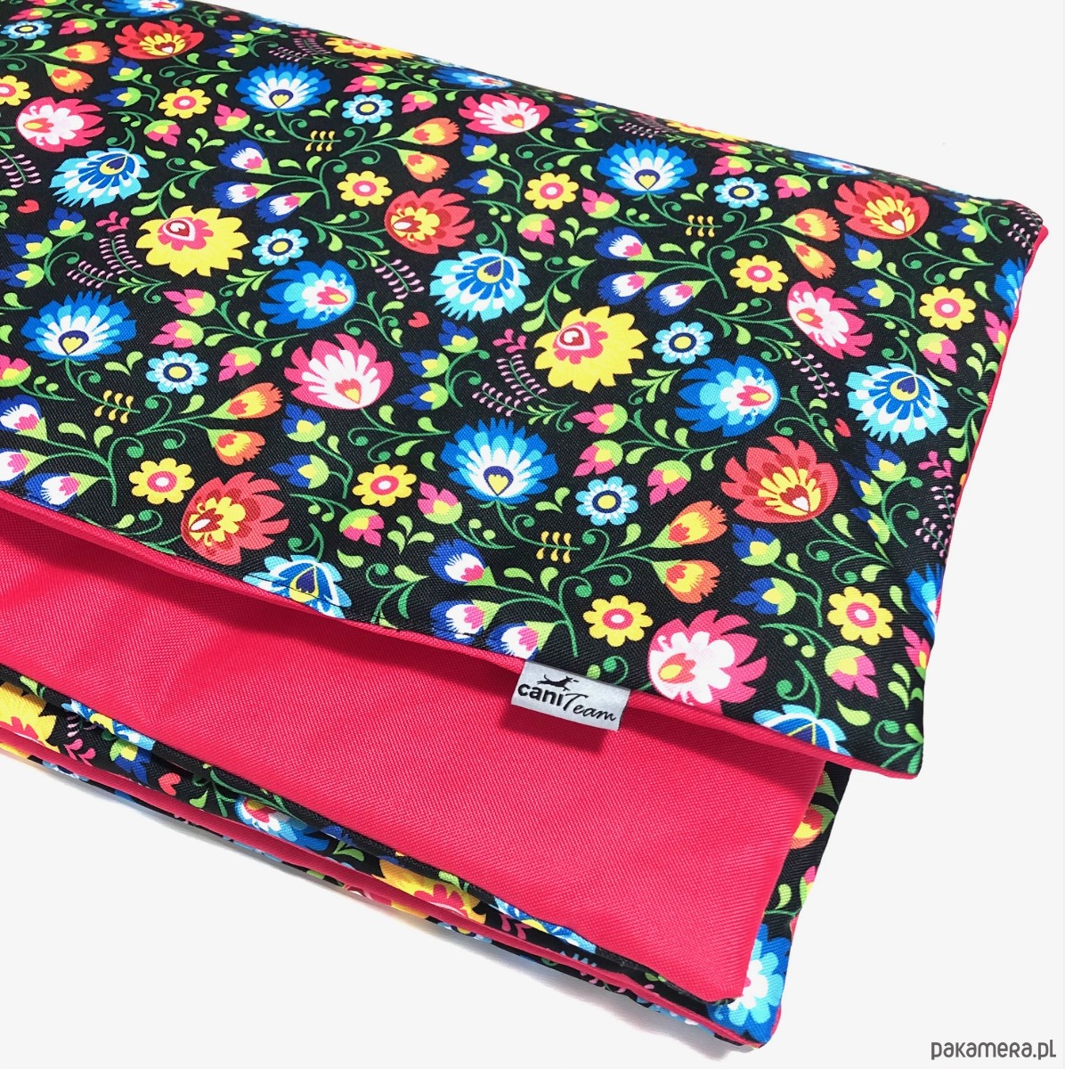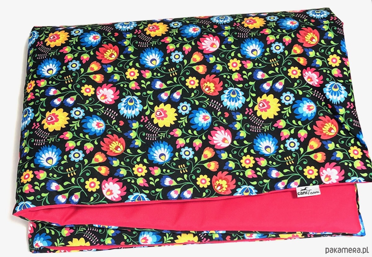 Nasz absolutny klasyk powraca - folkowy kocyk wodoodporny podszyty tkaniną w kolorze fuksji.