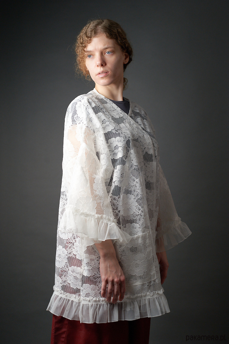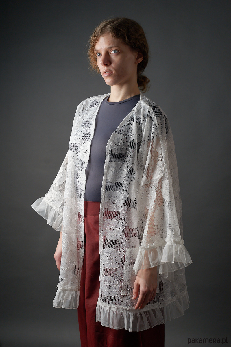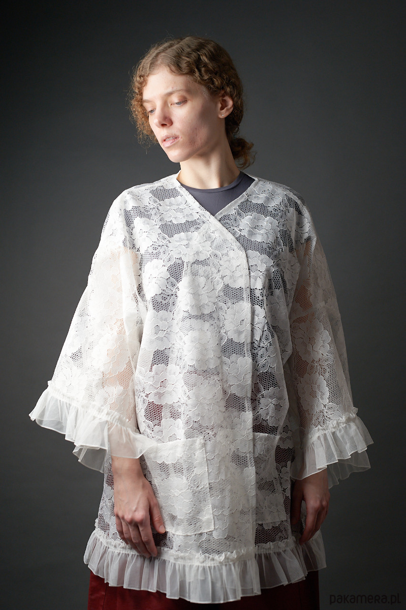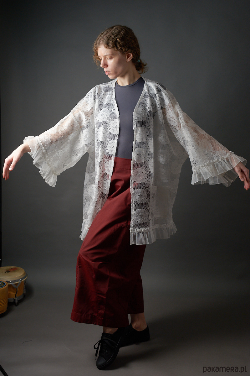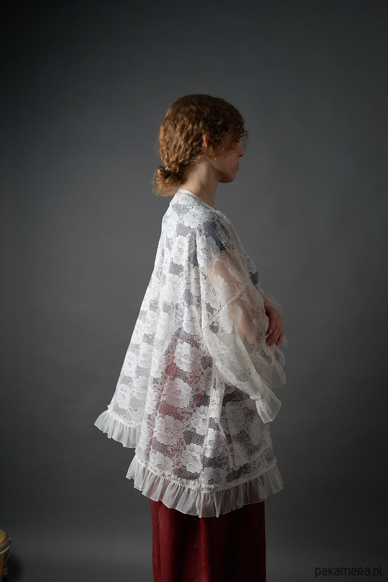 Długa biała bluzka kimonowa z koronki w stylu vintage