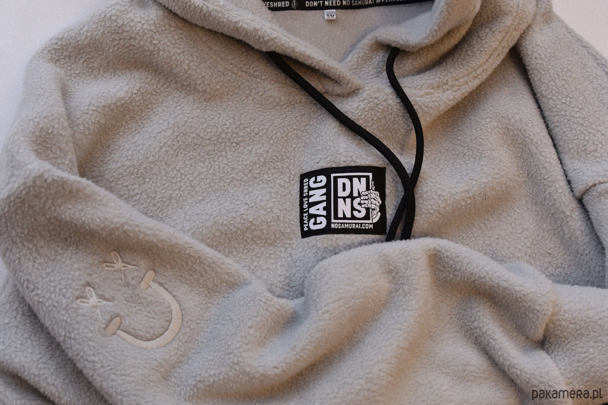 Długa, ciepła, zajexxsta. Nie kłaczy, nie zostawia farfocli. Jest kaptur, są troki i błogi DNNS uśmiech wyhaftowany na rękawie.