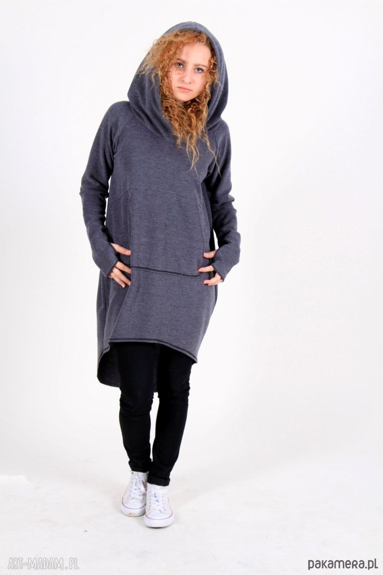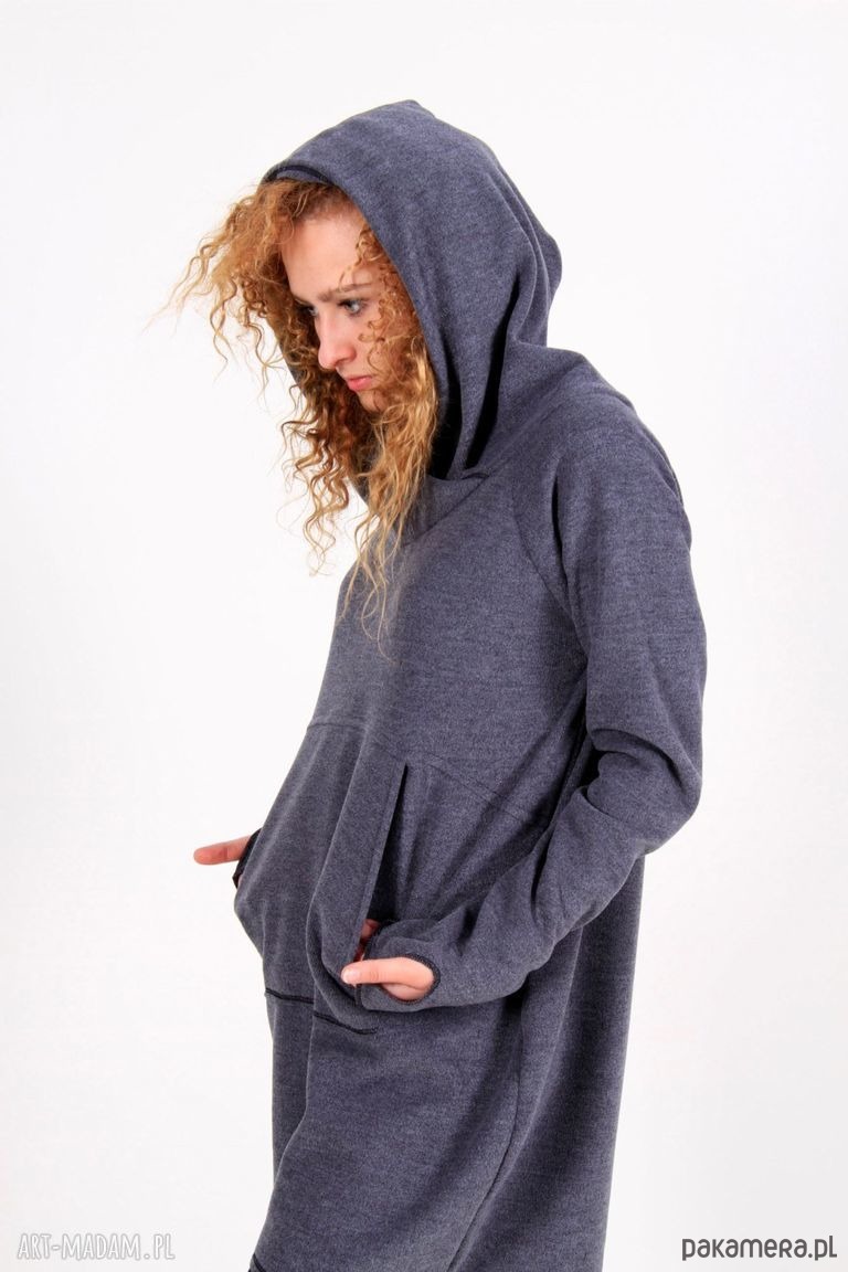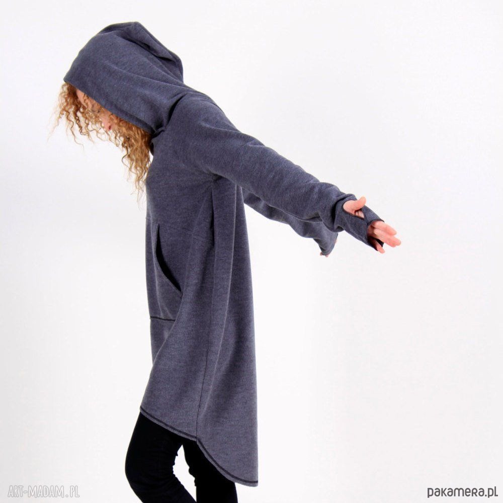 Długa ciepła bawełniana bluza z kieszenią , wejściem na kciuki