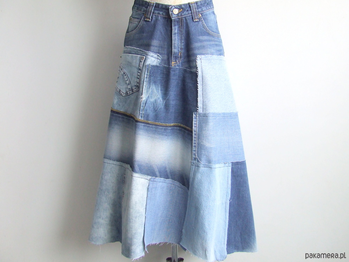 efektowna spódnica wykonana z denimu w różnych odcieniach