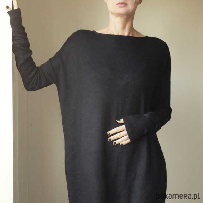 Oversize'owa sukienka bluza o prostym kroju. Lejąca, otulająca sylwetkę. Bardzo kobieca.