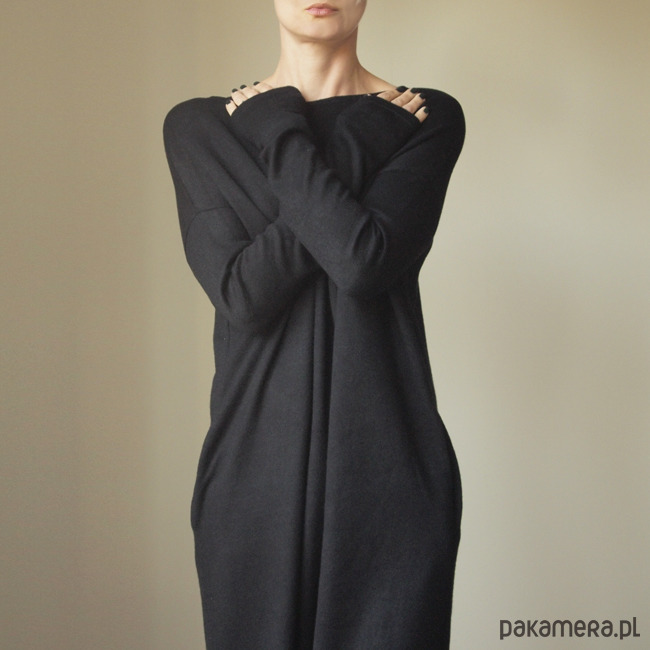 Styl oversize. Jeden rozmiar uniwersalny: szerokość pod pachami około 61cm. Długość oryginalna: około 150cm, ale możemy ją wykonać na dowolną długość, także na wymiar. Prosimy o kontakt.