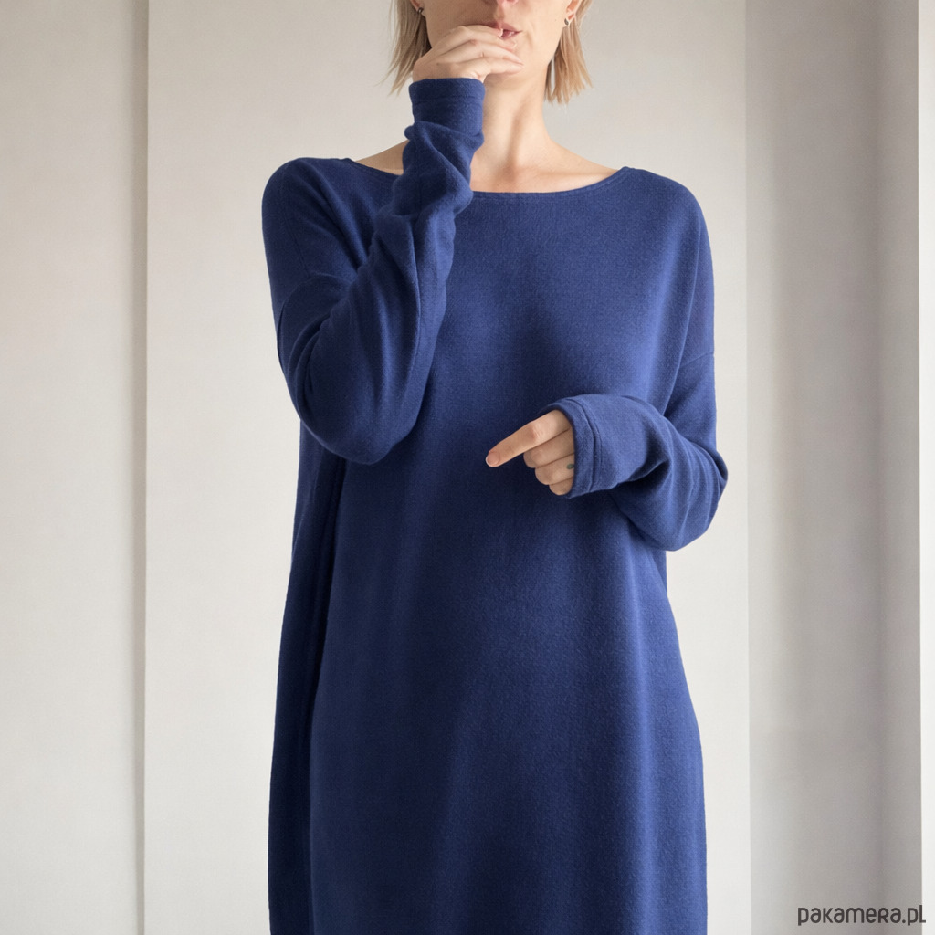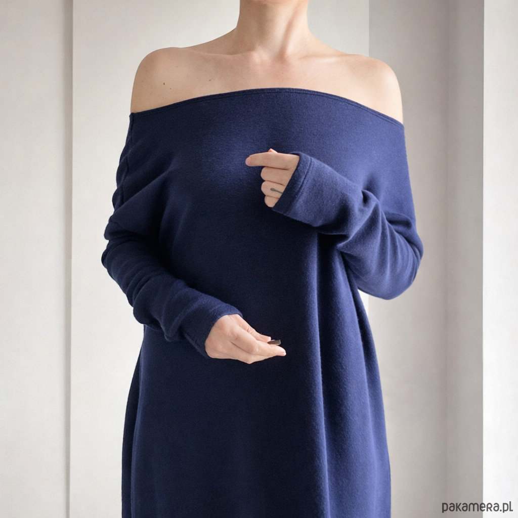 Uszyta z grubej, mięsistej dzianiny swetrowej, miękka i ciepła jak ulubiony koc.