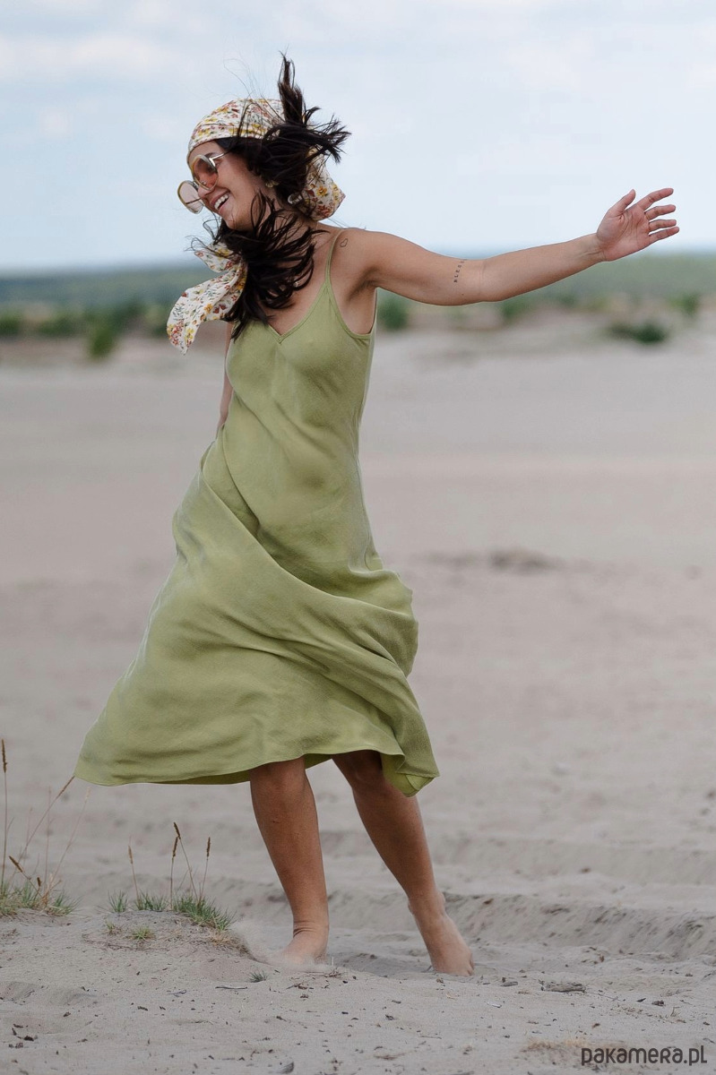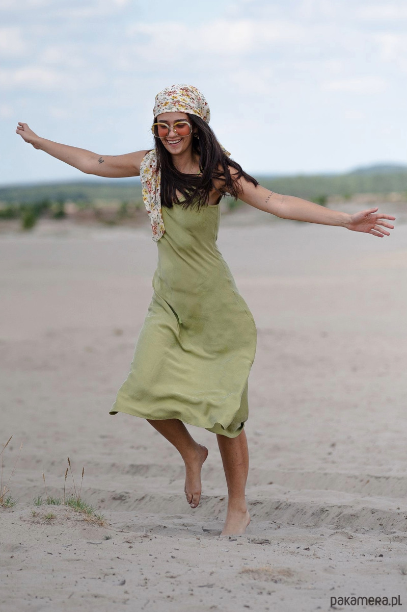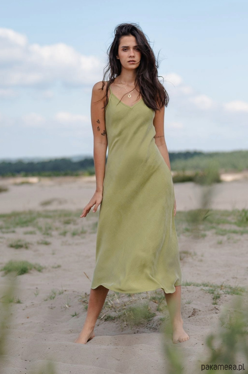 * Luźny krój: Sukienka slip dress nie opina ciała, lecz swobodnie spływa w dół i pięknie układa się na sylwetce.