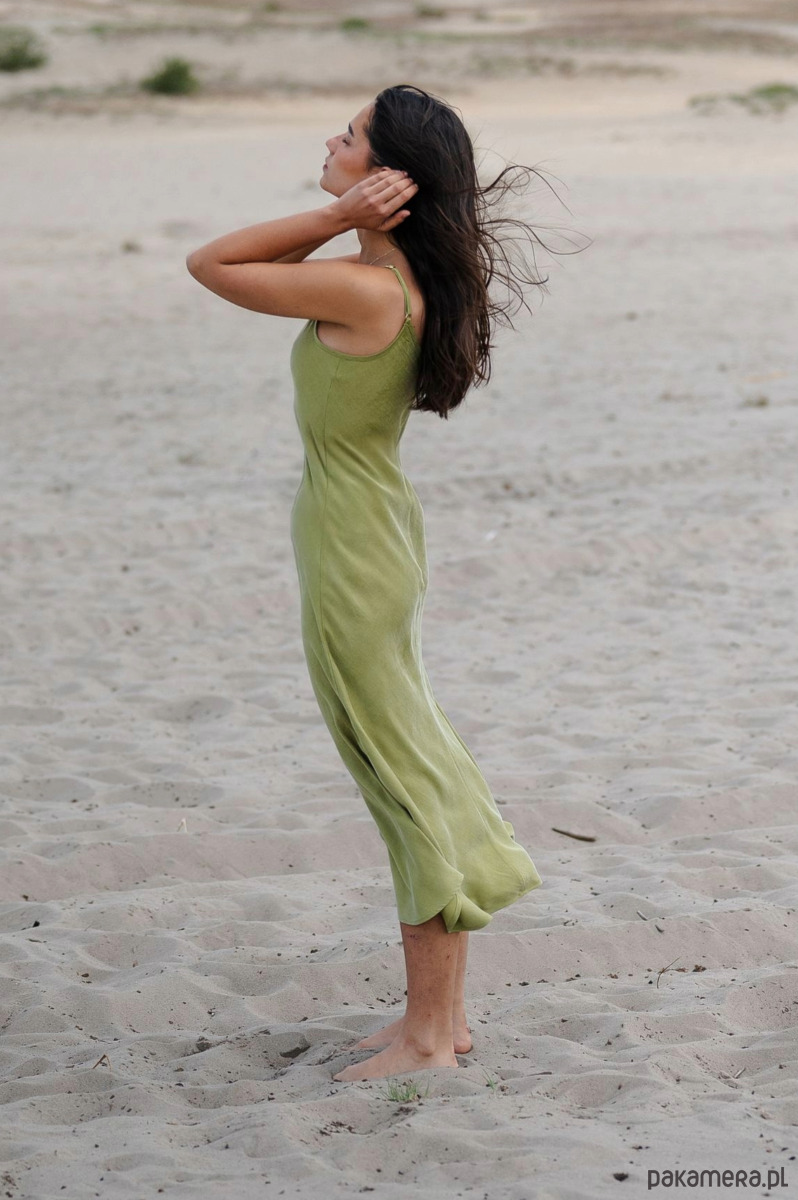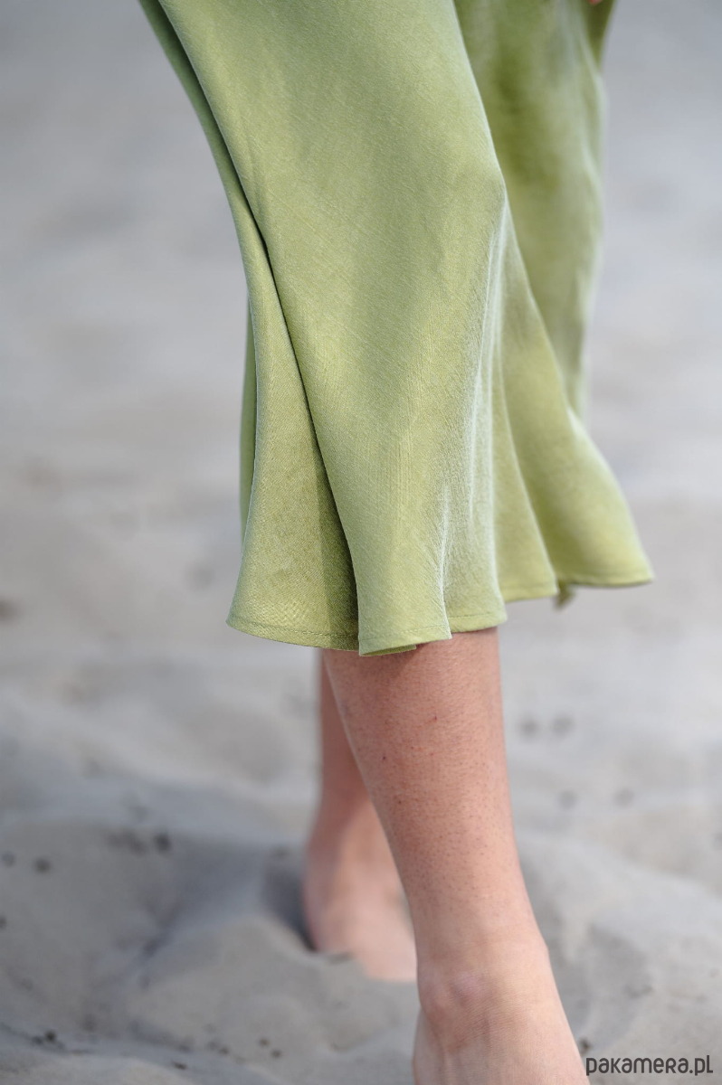 Kolor sukienki: perfect pear, to delikatny, stonowany odcień zieleni z domieszką żółtego i brązu. Jest to ciepły i subtelny kolor, który często kojarzy się z naturą, świeżością i optymizmem.
