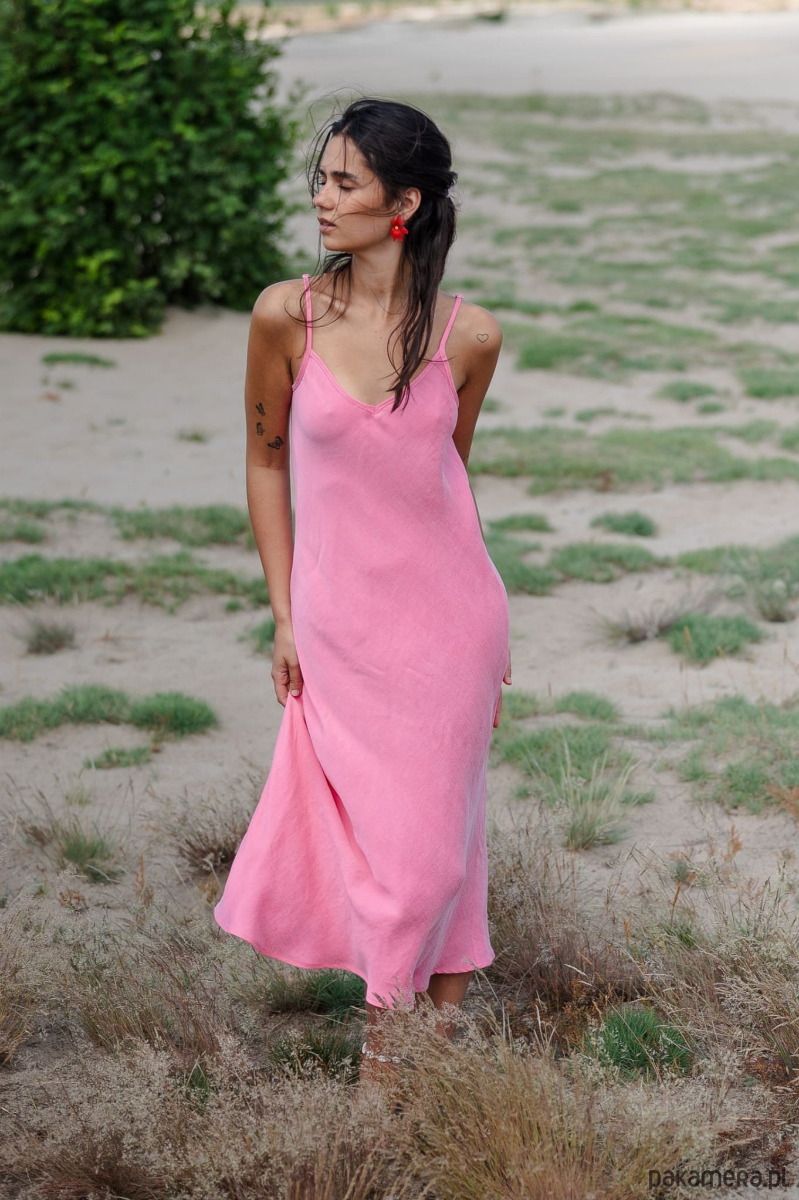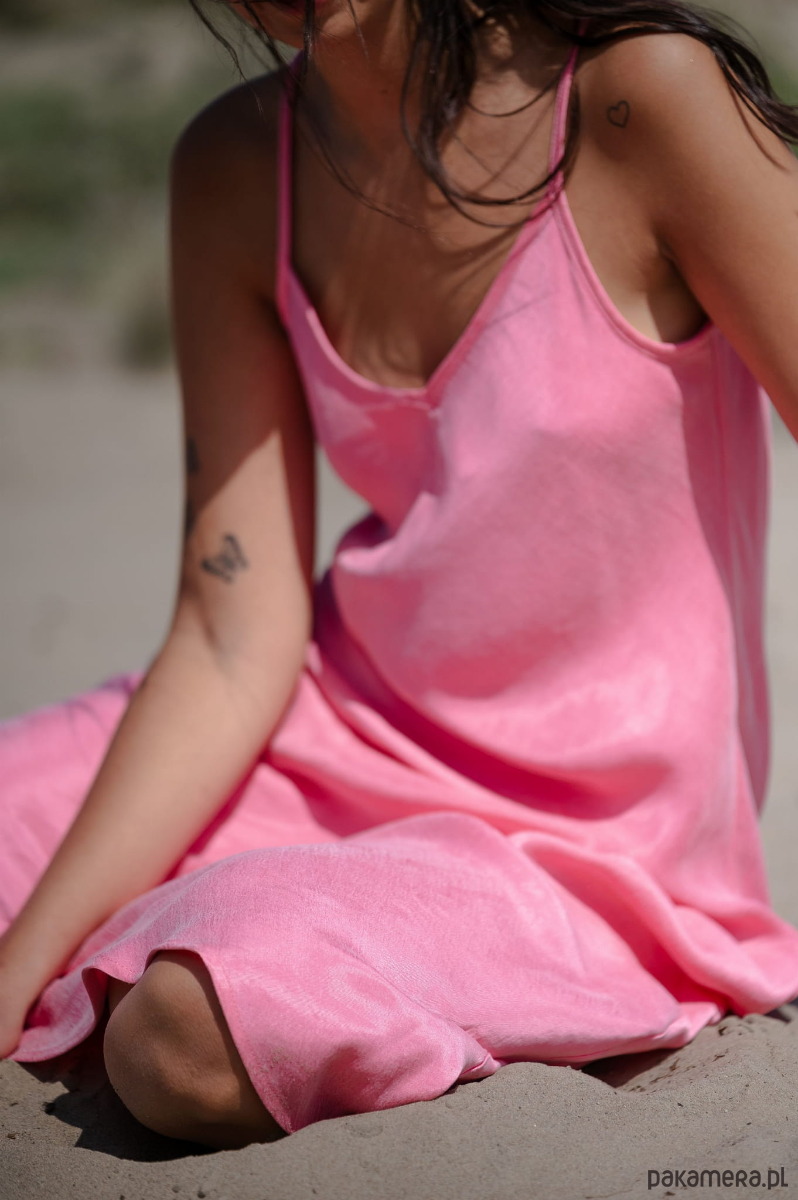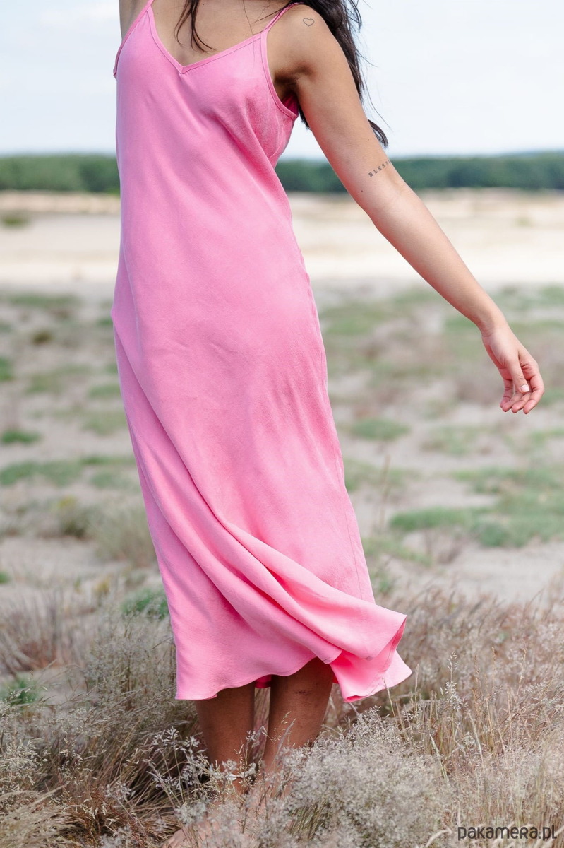 * Luźny krój: Sukienka slip dress nie opina ciała, lecz swobodnie spływa w dół i pięknie układa się na sylwetce.