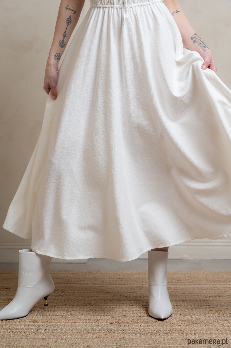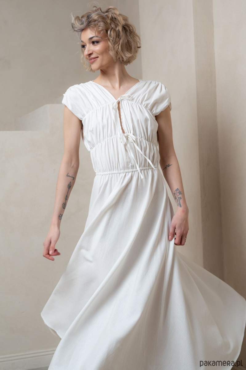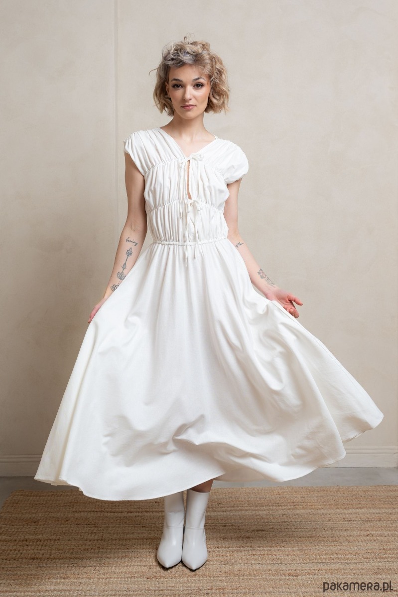 • Ponadczasowa biel: Czysta biel sukienki nadaje jej wyjątkowy, klasyczny charakter, który rozświetli każdą chwilę, dodając elegancji i świeżości każdej stylizacji.
