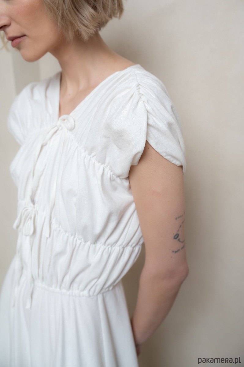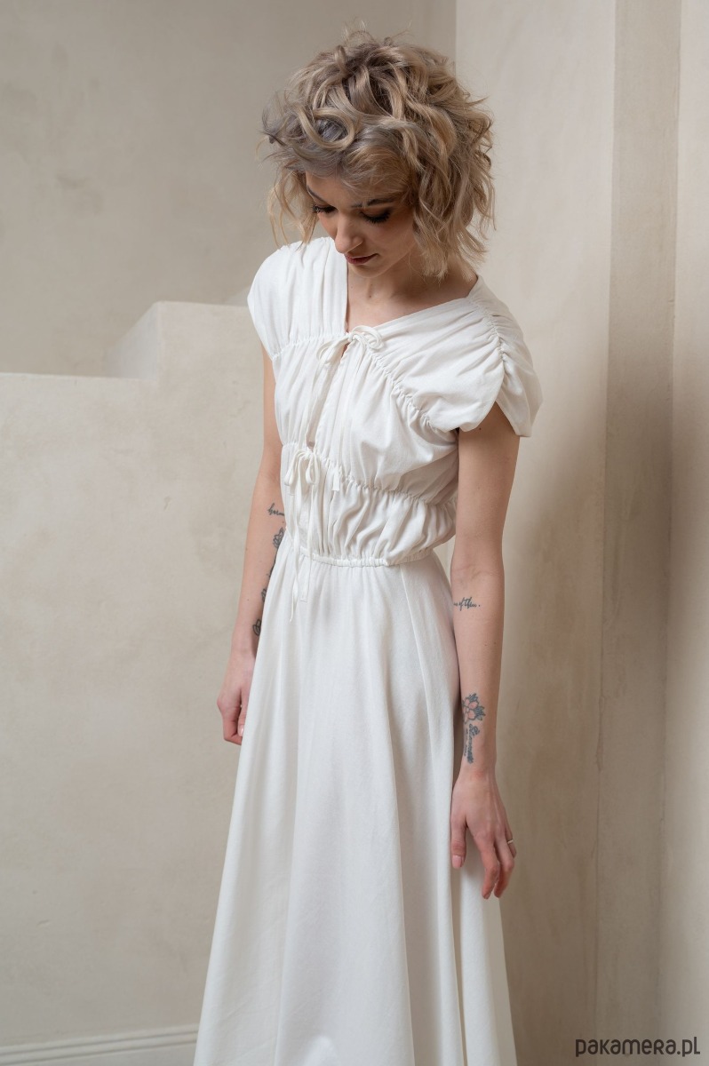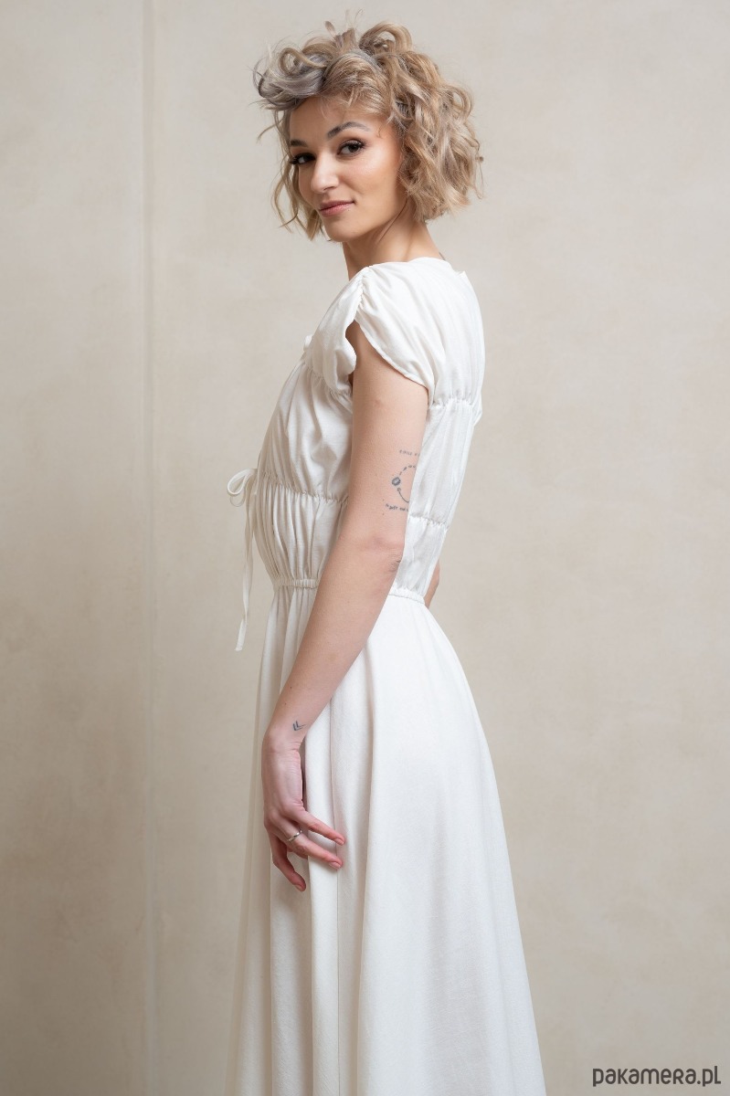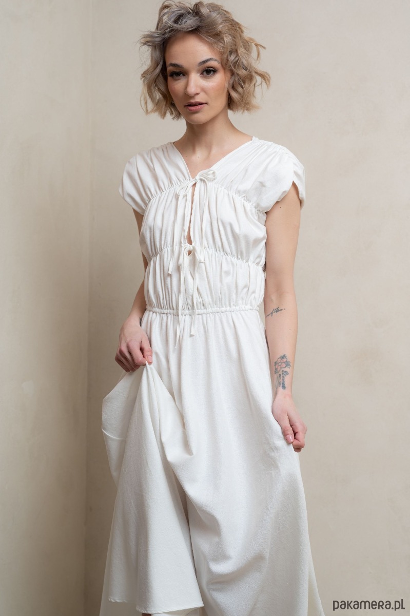 • Ponadczasowa biel: Czysta biel sukienki nadaje jej wyjątkowy, klasyczny charakter, który rozświetli każdą chwilę, dodając elegancji i świeżości każdej stylizacji.