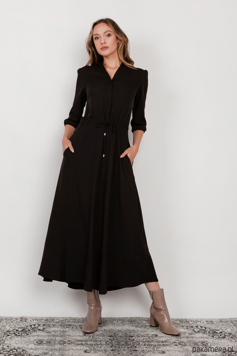 Długa sukienka z rękawem 3/4 - SUK205 czarna
