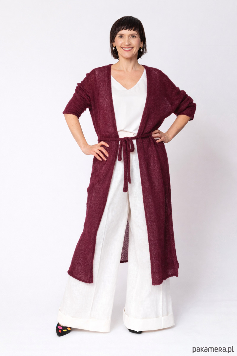 Szukasz idealnego okrycia na chłodniejsze dni? Nasz długi kardigan damski z paskiem to połączenie elegancji i niesamowitej miękkości. Ten wełniany sweter damski sięga do połowy łydki, dzięki czemu optycznie wydłuża sylwetkę, nadając jej lekkości.